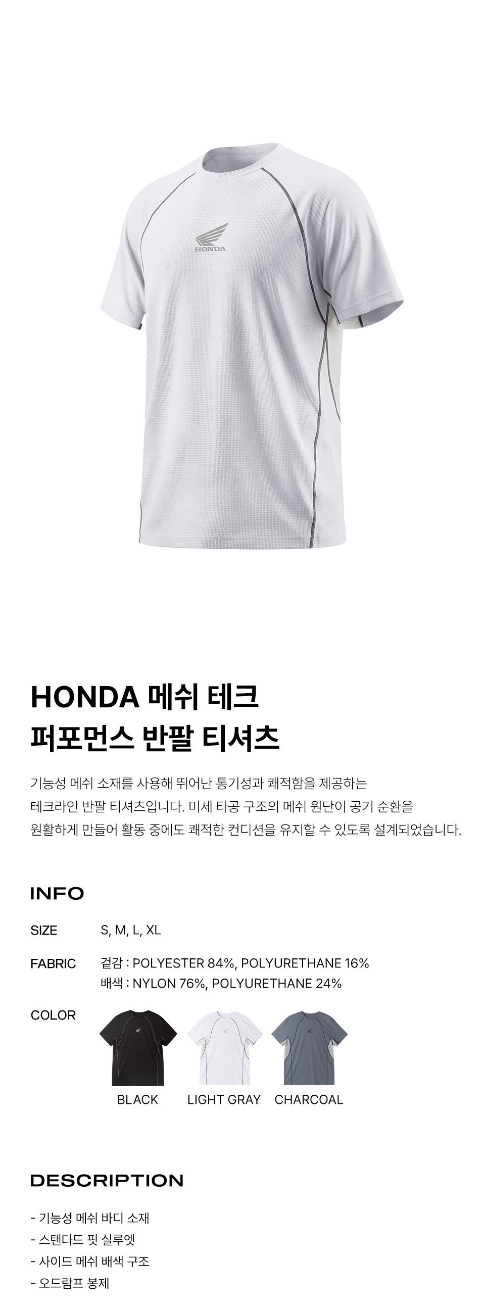혼다 H-Tech 메쉬 벤틸레이션 하프 저지 슬리브 라이트 그레이
