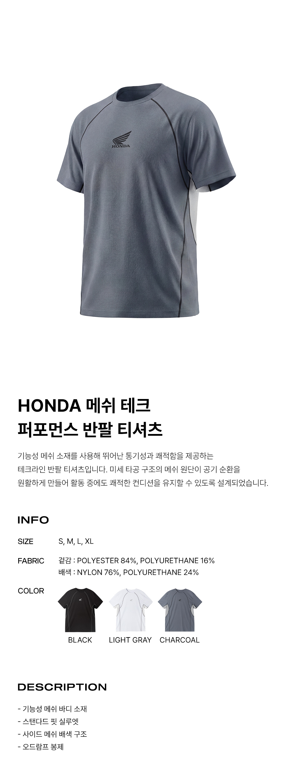 혼다 H-Tech 메쉬 벤틸레이션 하프 저지 슬리브 차콜