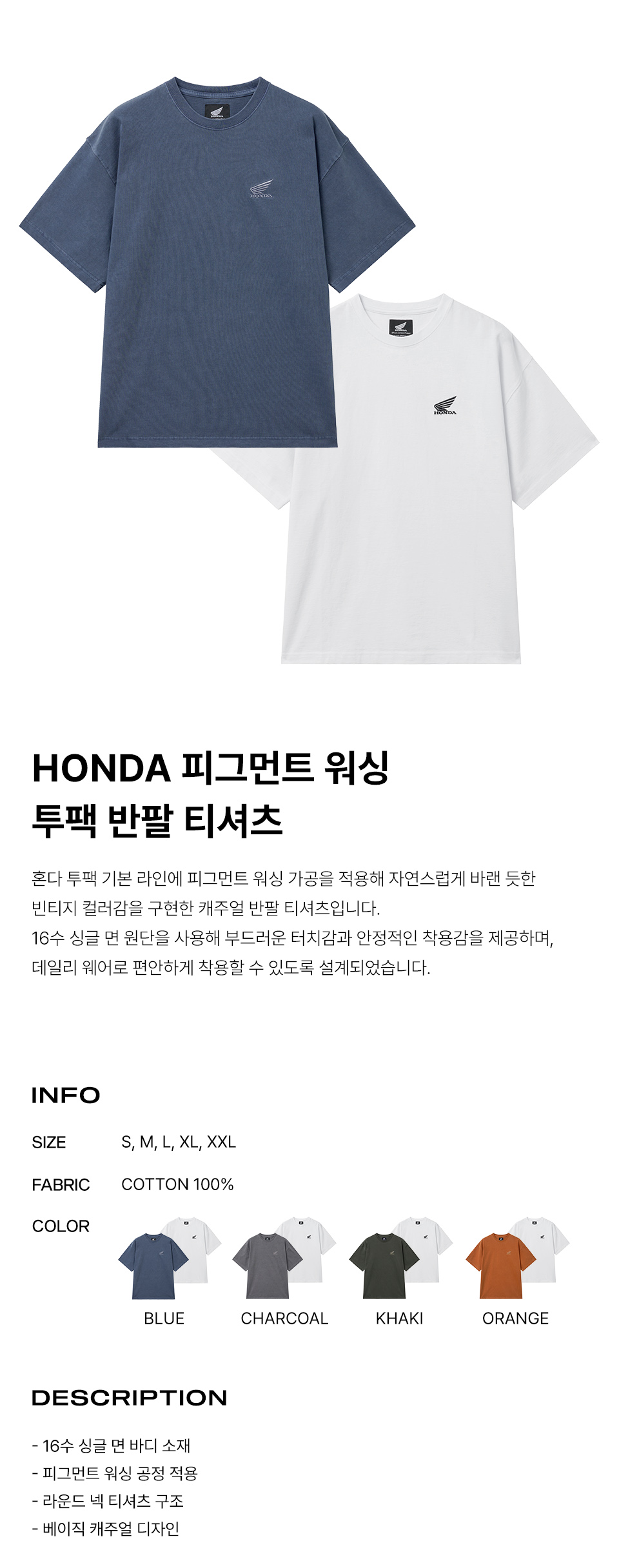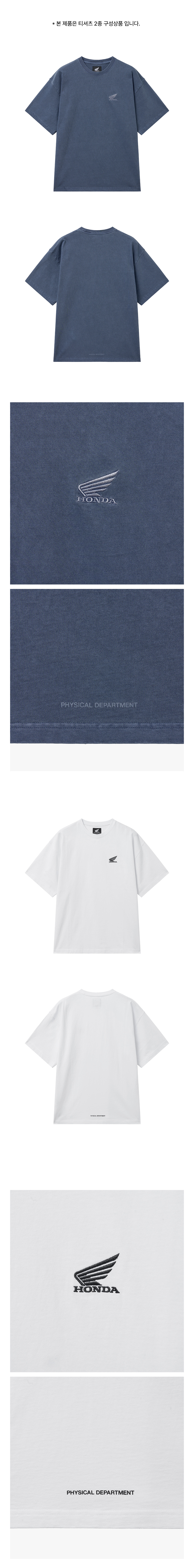 혼다 [2Pack] 오리지널 윙 로고 피그먼트 반팔 티셔츠 블루 & 화이트