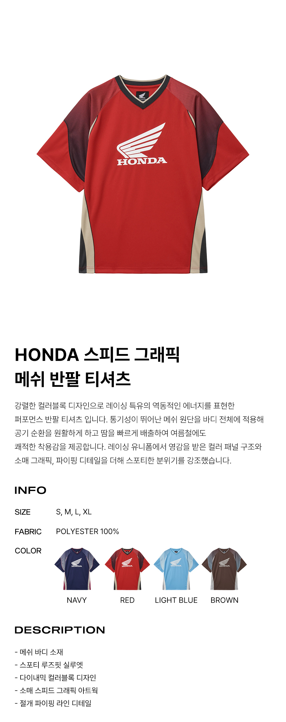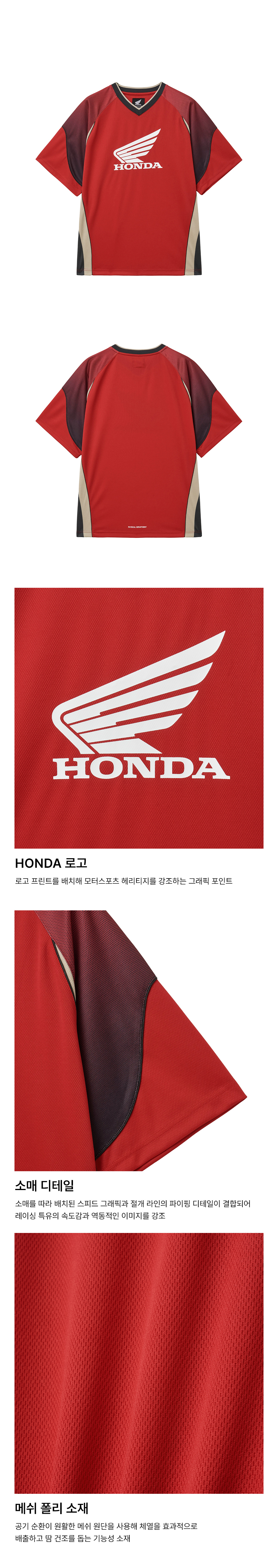 혼다 메쉬 스피드 트랙 반팔 티셔츠 레드