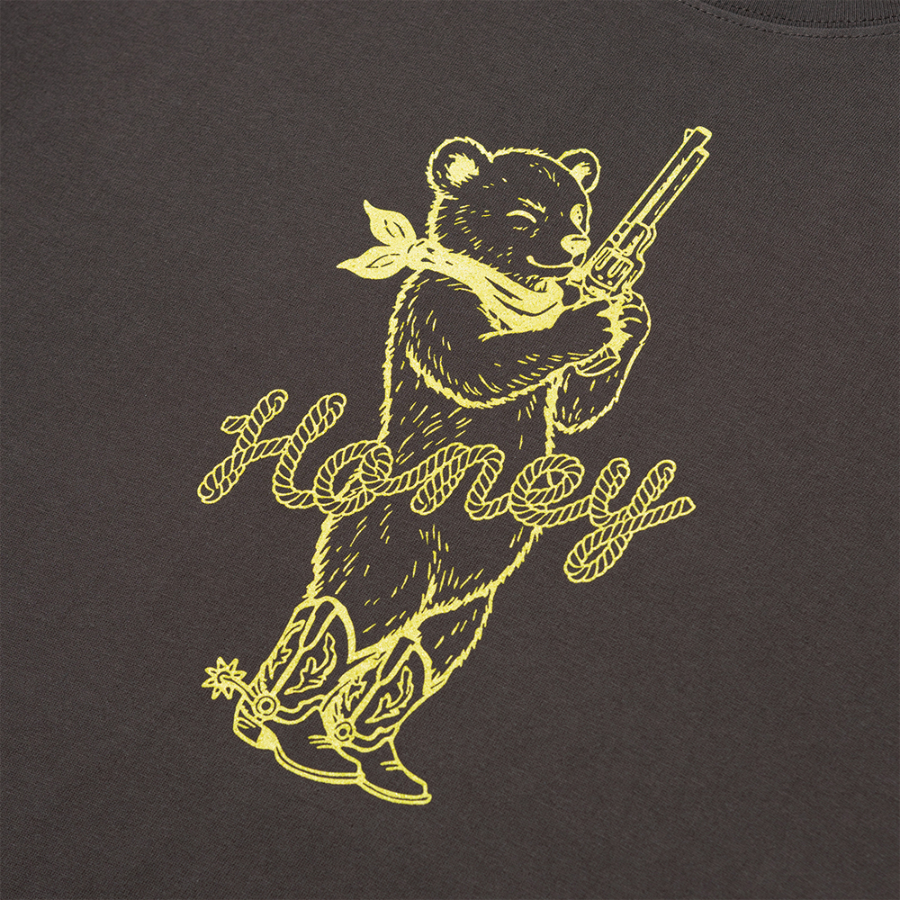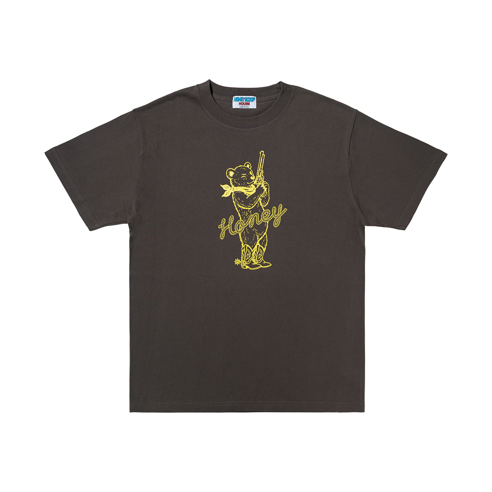 HONEY SCOOP HOUSE HONEY BEAR TEE CHARCOAL 100% COTTON SHORT SLEEVE GRAPHIC TEE