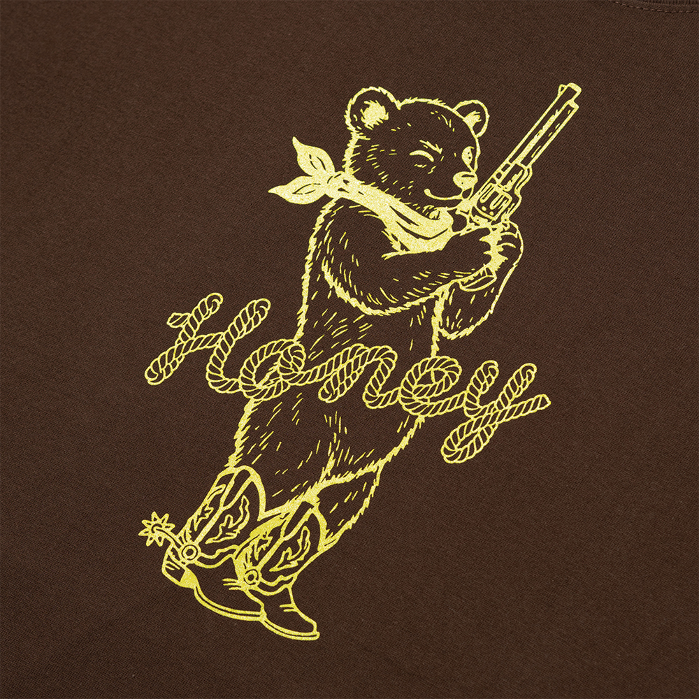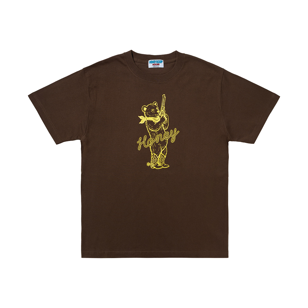 HONEY SCOOP HOUSE HONEY BEAR TEE BROWN 100% COTTON SHORT SLEEVE GRAPHIC TEE
