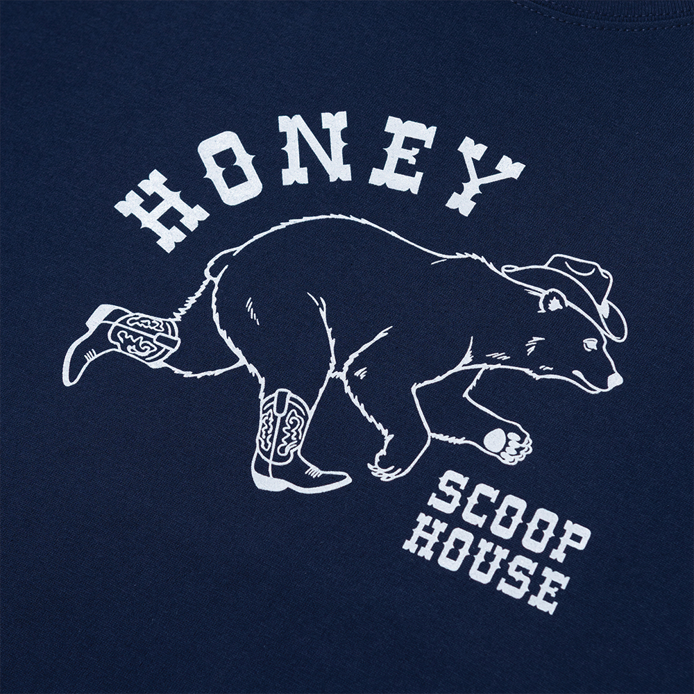 HONEY SCOOP HOUSE WESTERN BEAR TEE INDIGO 100% COTTON SHORT SLEEVE GRAPHIC TEE