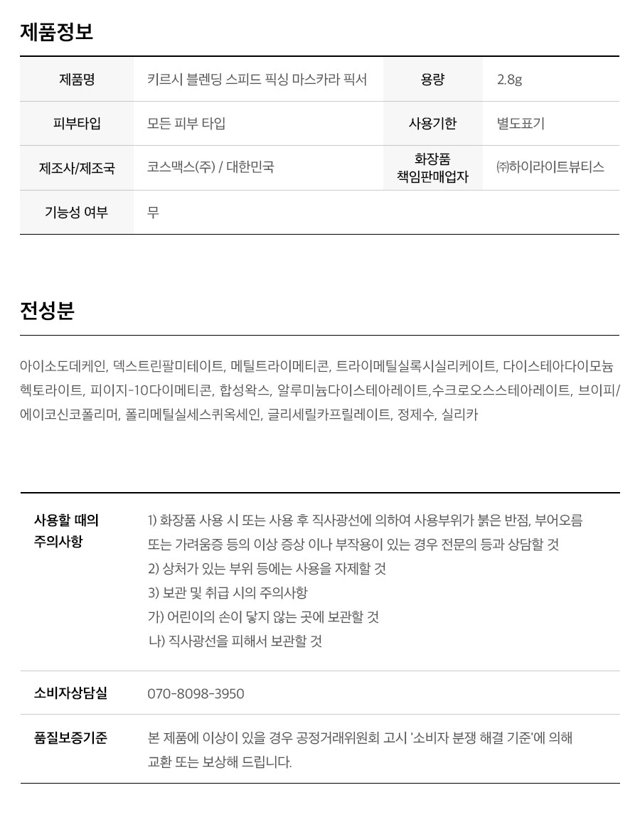 [사은품 증정] 키르시블렌딩 스피드 픽싱 마스카라 픽서