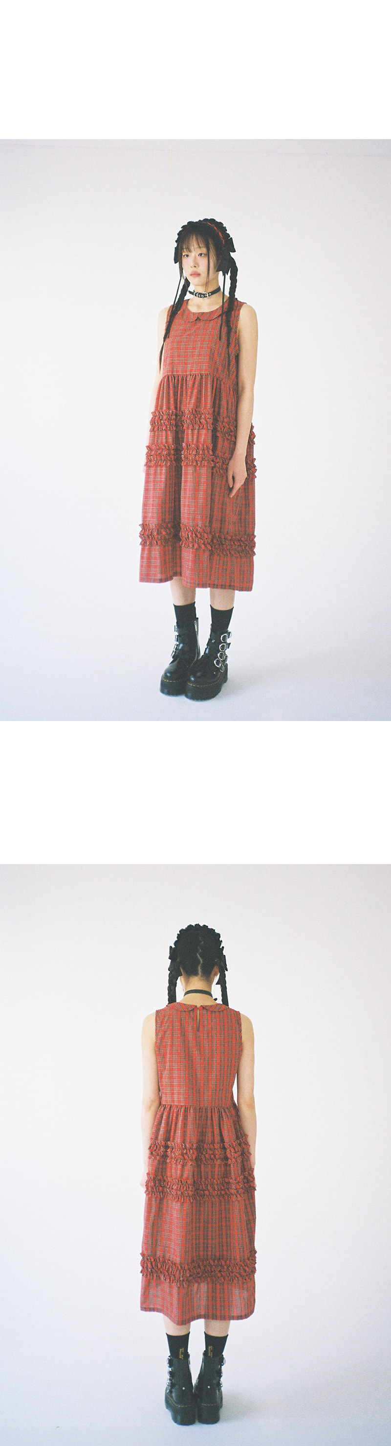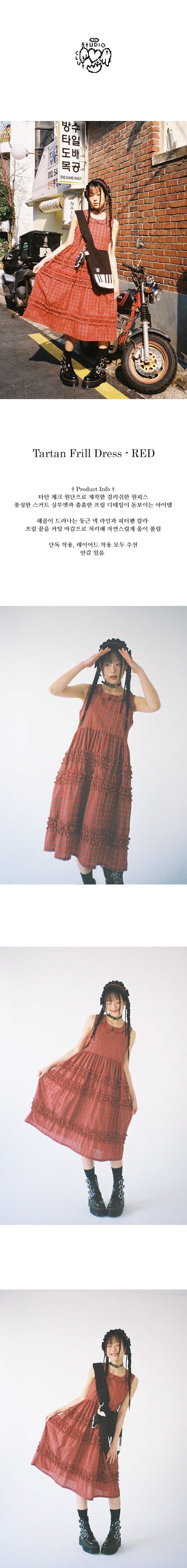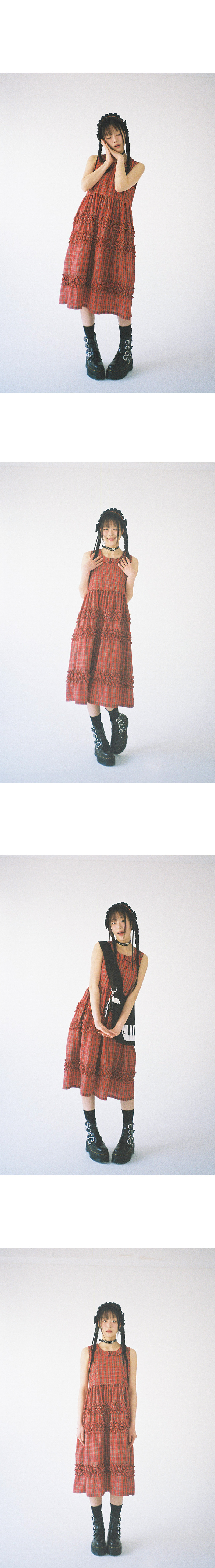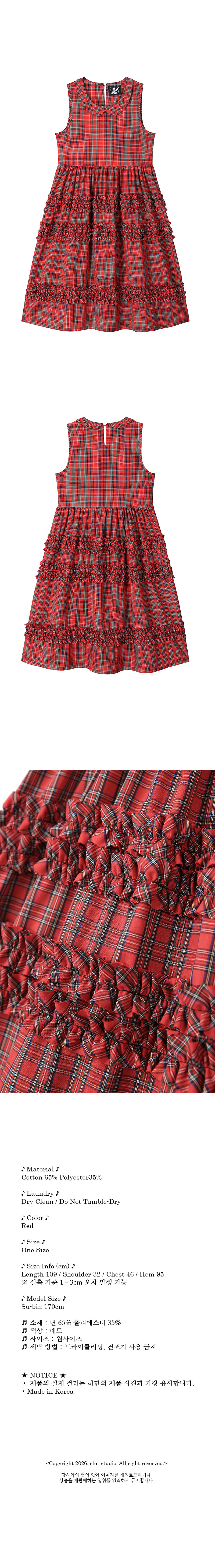 클럿 스튜디오 타탄 프릴 드레스 레드