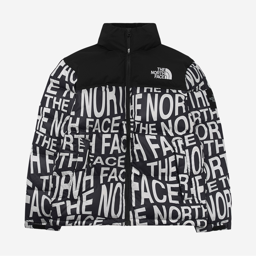 노스페이스 화이트 라벨 노벨티 눕시 다운 자켓 프린트 블랙