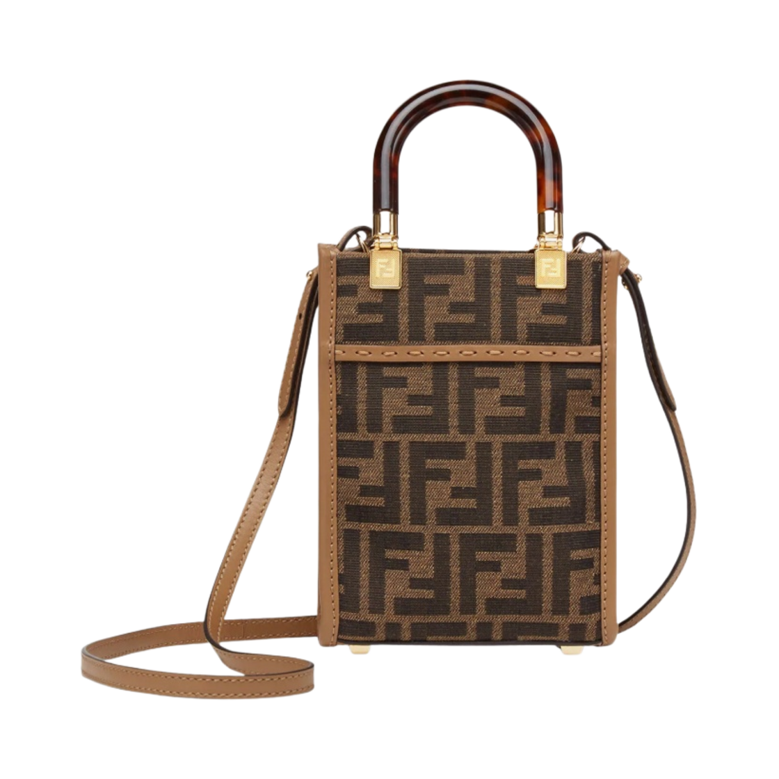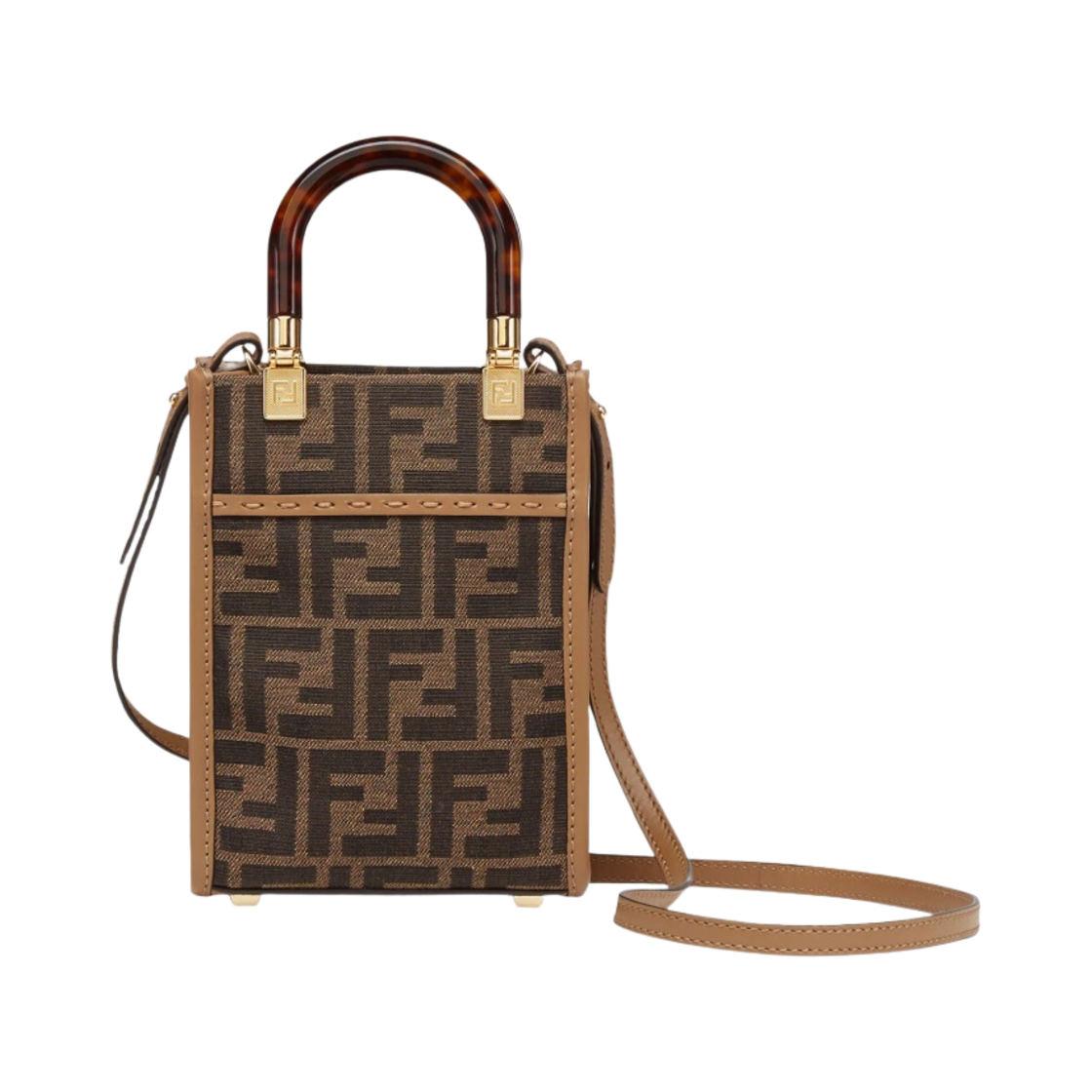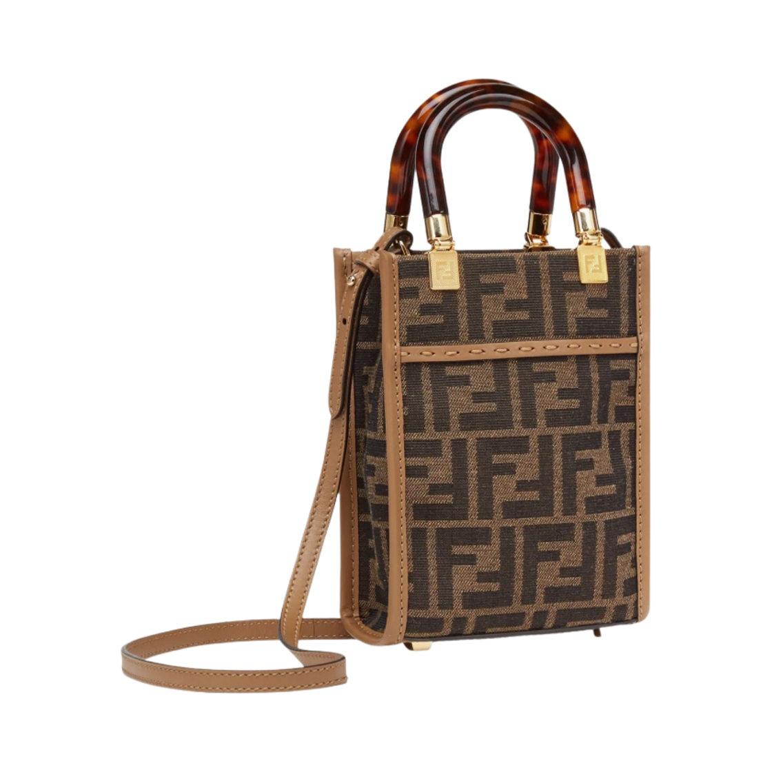 Fendi Sunshine Shopper FF Fabric Mini Bag Brown
