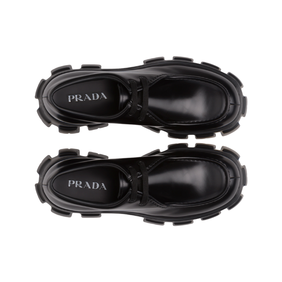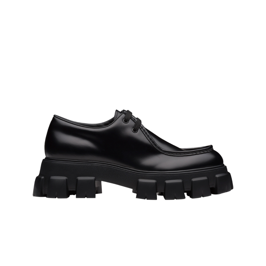 Prada Monolith Brushed Leather 2 Holes Lace-Up Shoes Black