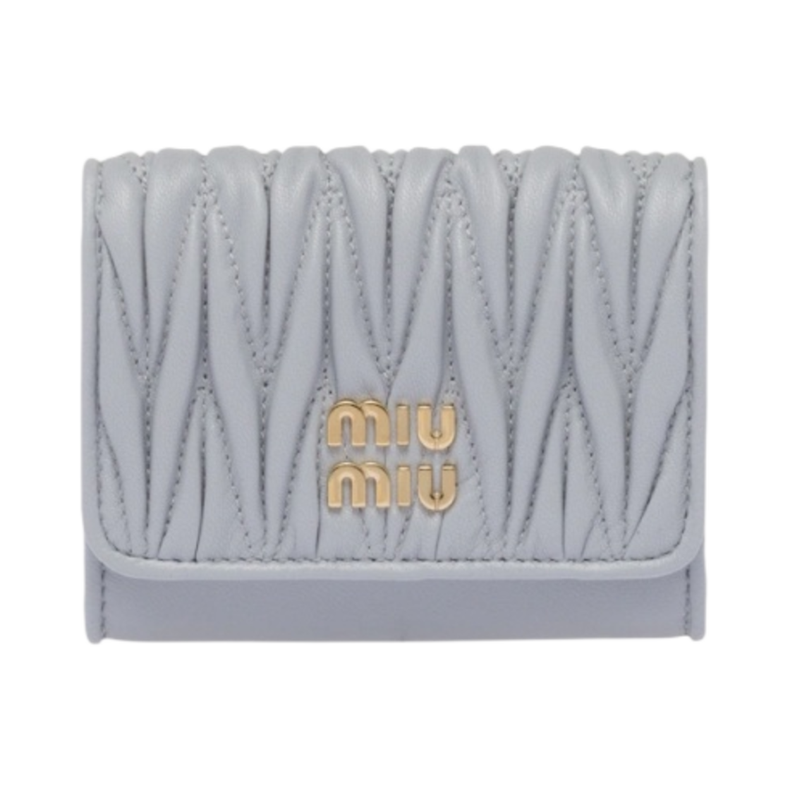 Miu Miu Matelasse Nappa Leather Pocket Card Holder Cornflower Blue