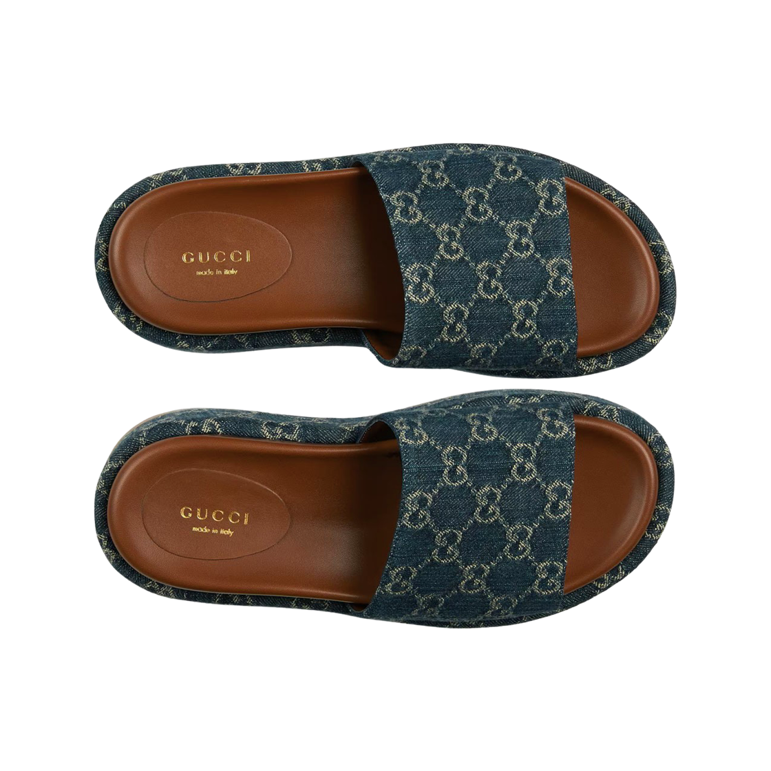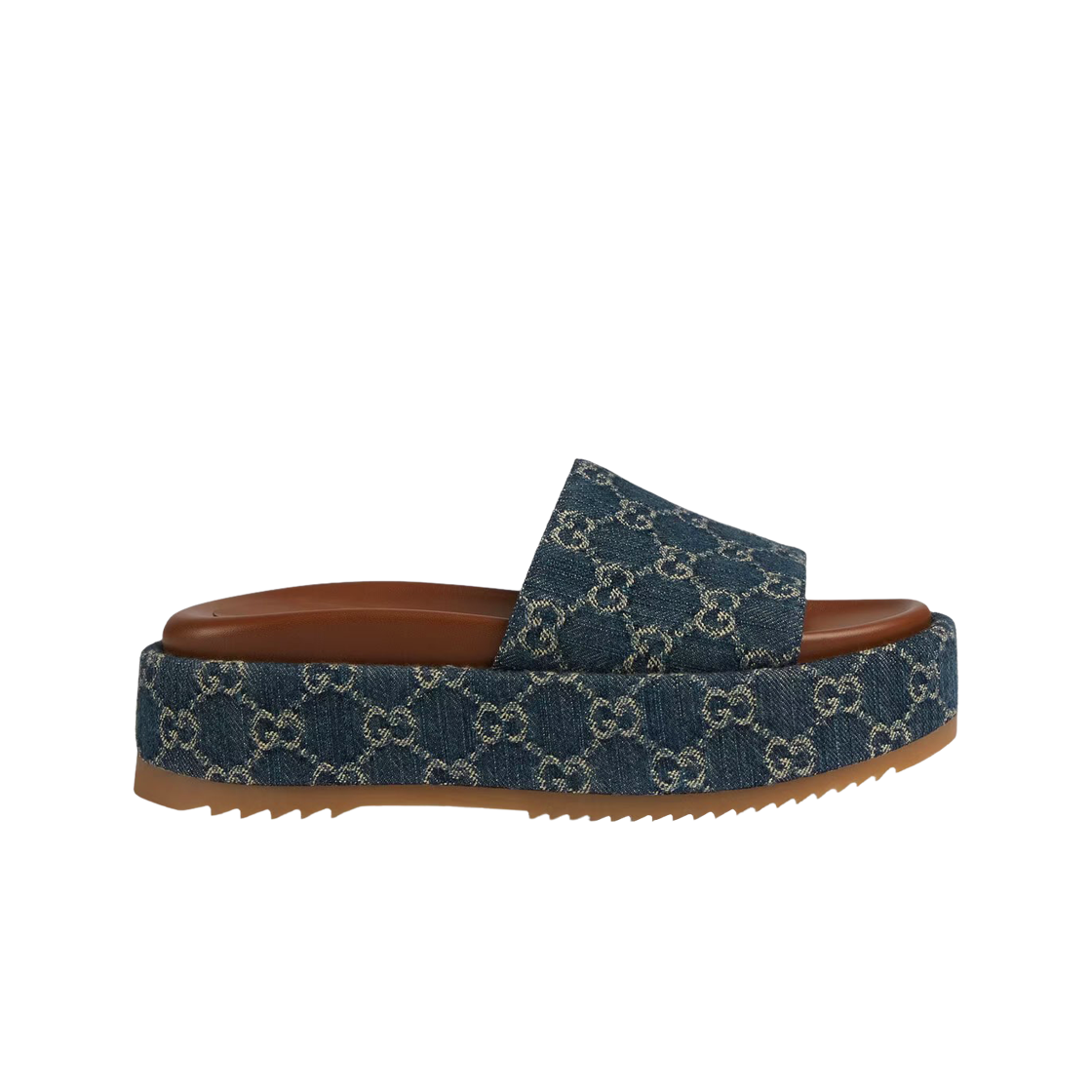 (W) Gucci Platform Slide Sandal Dark Blue Ivory