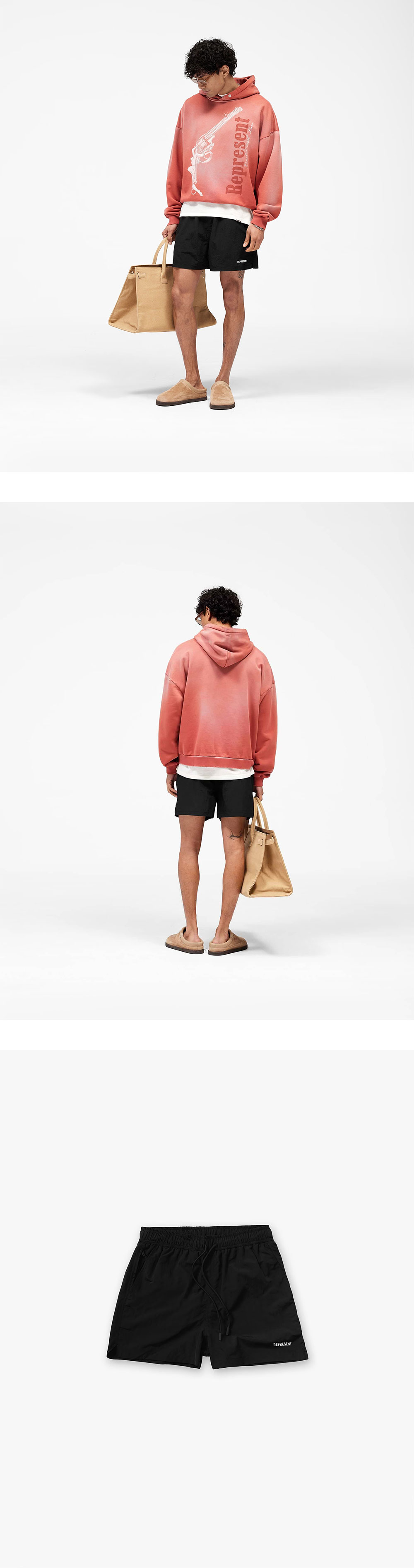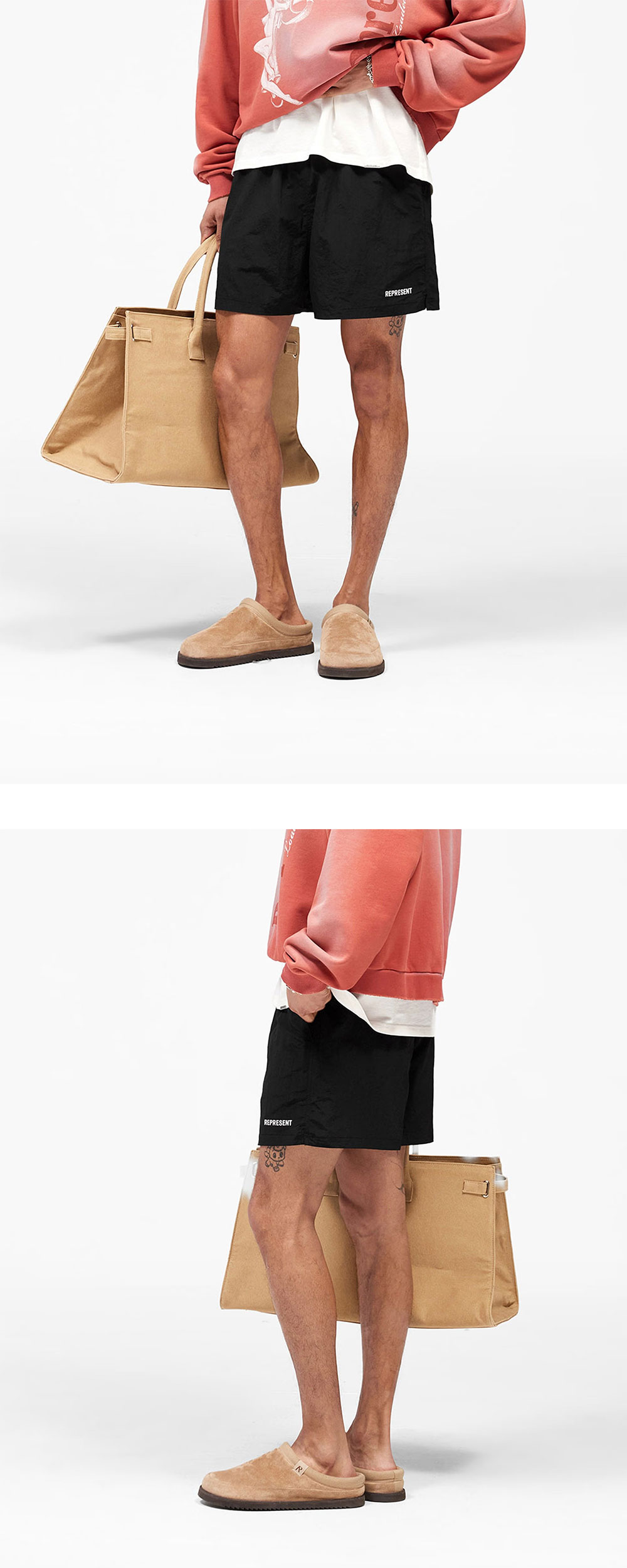 리프레젠트 코어 스윔쇼츠 제트 블랙 입니다. - 왼쪽 하단 밑단에 배치된 화이트 리프레젠트 로고 프린트 - 허리 라인의 밴딩 처리와 조절 가능한 블랙 드로우스트링 - 양옆에 위치한 실용적인 사이드 포켓 디테일