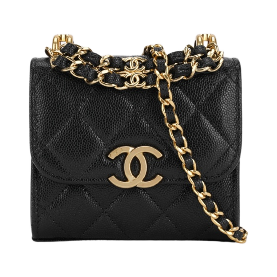 샤넬 체인 달린 미니백 그레인드 카프스킨 & 골드 메탈 블랙