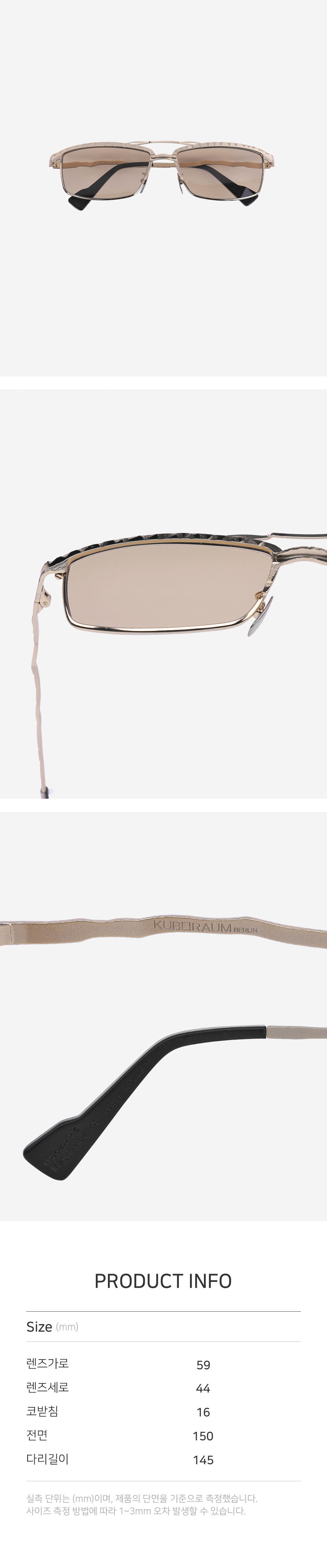 실측 단위는 mm이며, 제품의 단면을 기준으로 측정했습니다.