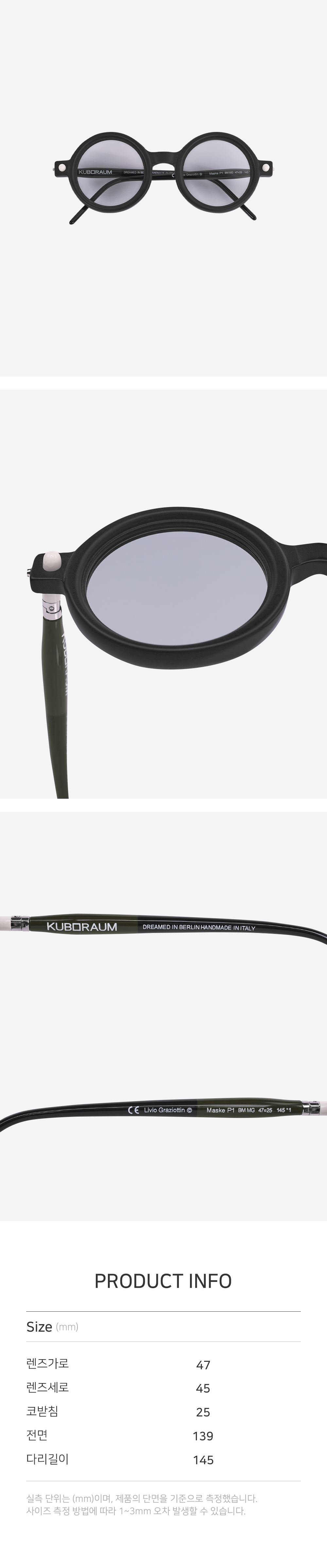 쿠보라움 P1 블랙 매트 밀리터리 그린 그레이 틴트 렌즈