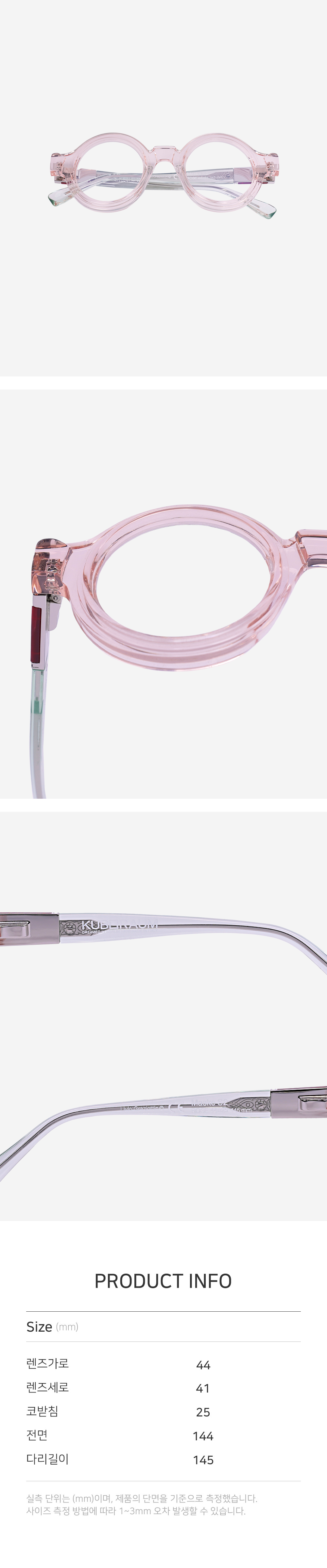 실측 단위는 mm이며, 제품의 단면을 기준으로 측정했습니다.