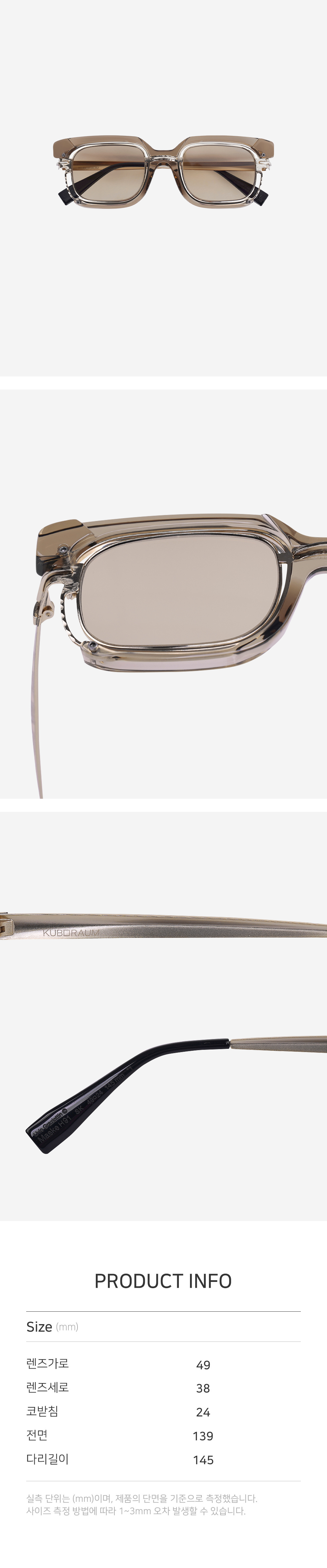 실측 단위는 mm이며, 제품의 단면을 기준으로 측정했습니다.