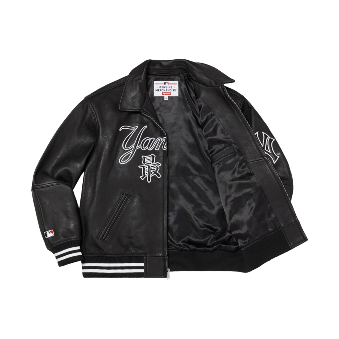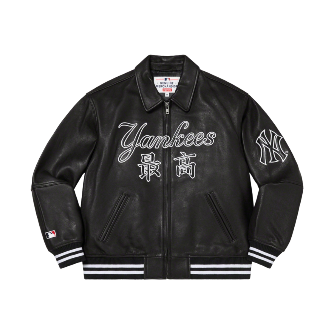 슈프림 x 뉴욕 양키스 간지 레더 바시티 자켓 블랙 - 22FW