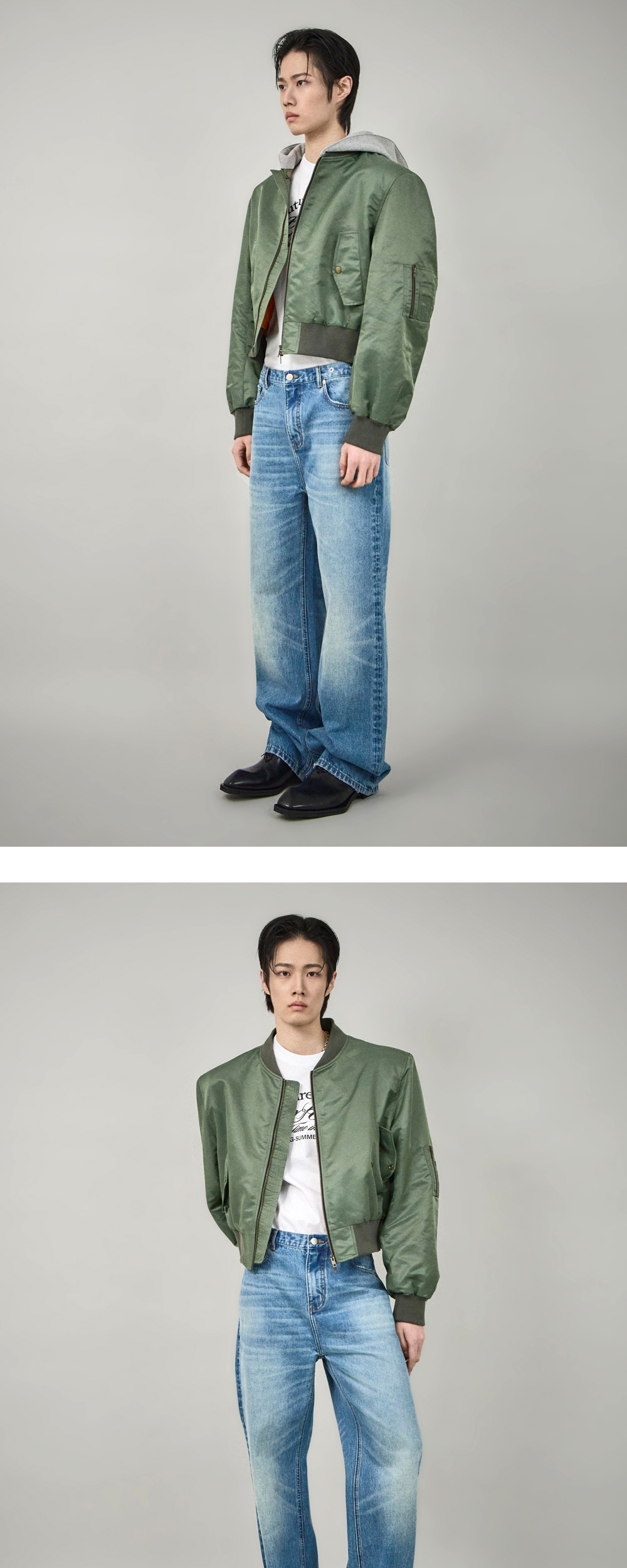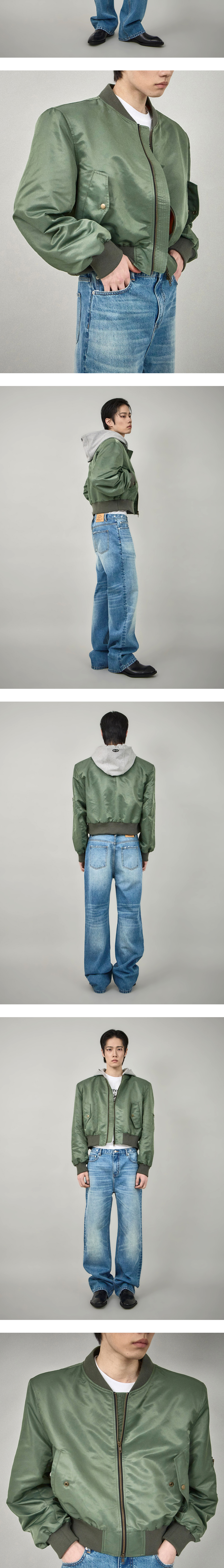 크롭 렝스로 제작된 뉴 시즌 봄버 재킷으로, 코튼 져지 소재의 탈부착 후드와 15mm 숄더 패드가 내장되어 다양한 실루엣 연출이 가능한 제품입니다. 발수 리사이클 나일론 소재와 비스코스 안감을 사용해 우수한 내구성을 제공합니다. [PRODUCT INFORMATION] 제조국: 한국 소재: 리사이클 나일론 100% 소재2: 비스코스 레이온 52%, 폴리에스터 48% -크롭 핏 -탈부착이 가능한 코튼 져지 후드 -15mm 숄더 패드 내장 -후드의 자수 로고 패치 -더블엔드 지퍼 클로징 -두개의 플랩 포켓 [MODEL SPEC & PRODUCT SIZE] Man model is 181cm, and wearing a OS size