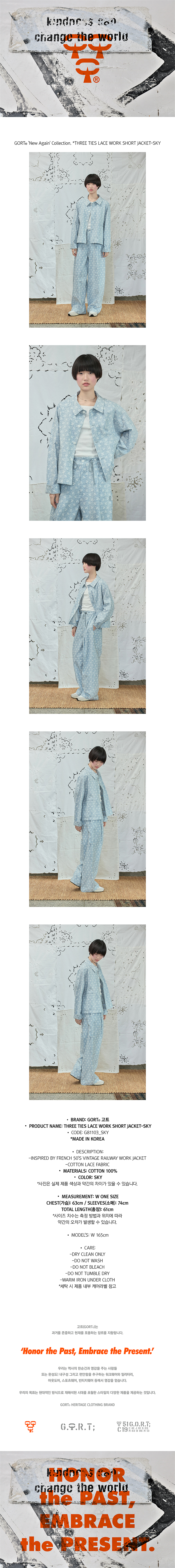 고트 쓰리 타이 레이스 워크 숏 자켓 스카이