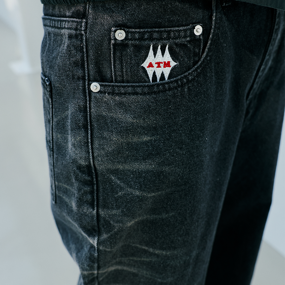애프터매스 재그드 스트라이프 데님 팬츠 블랙