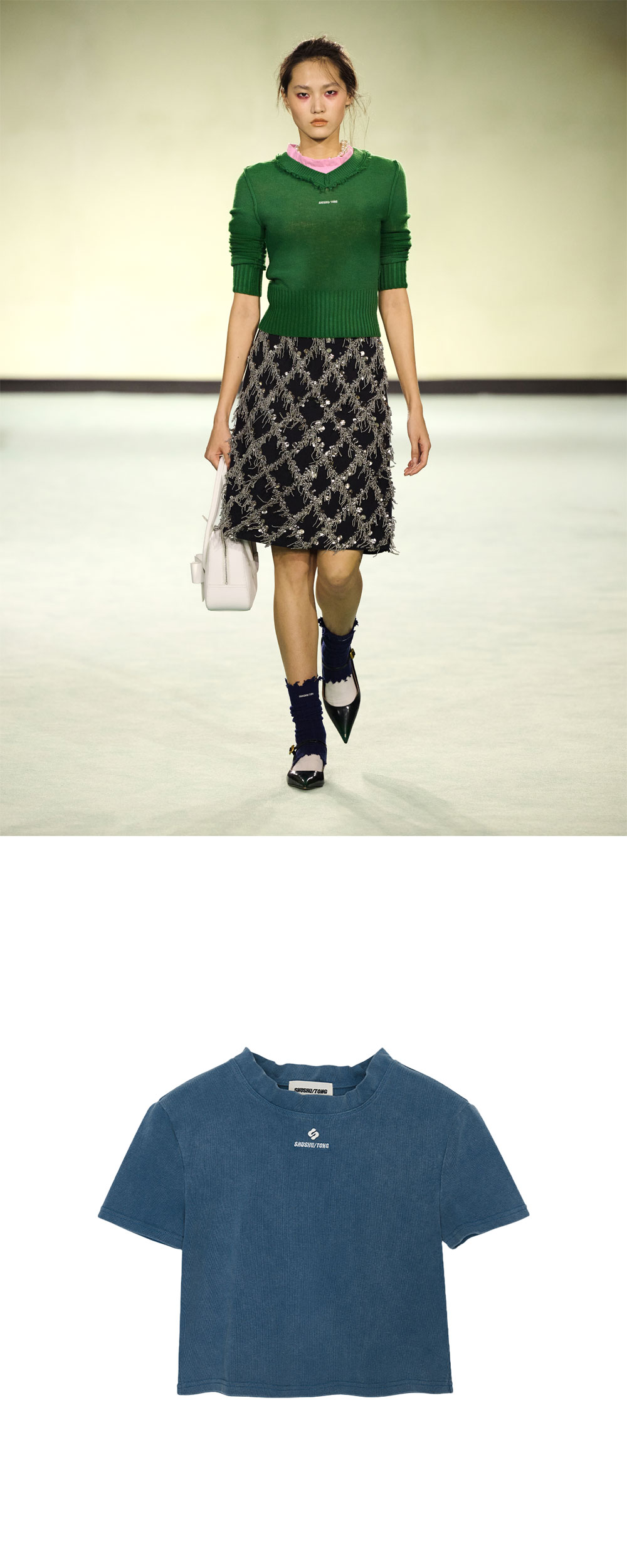 슈슈통 우먼 웨이브 레이스 칼라 티셔츠 블루 그레이 - 26SS