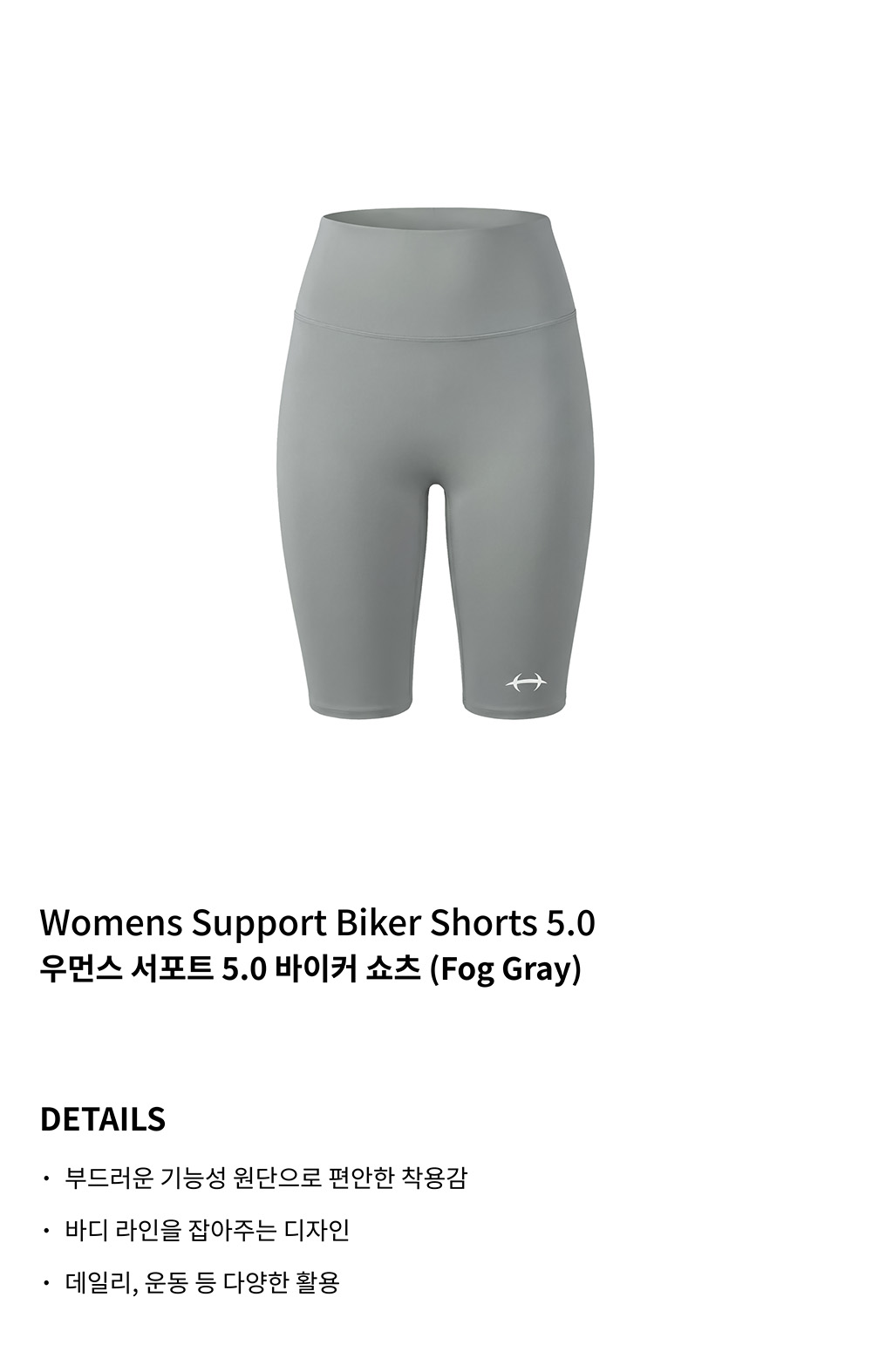 에이치덱스 우먼스 서포트 5.0 바이커 쇼츠 포그 그레이