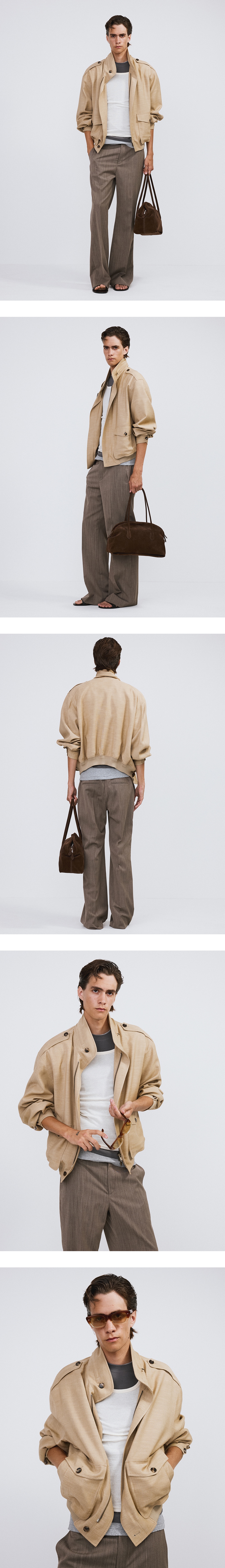 - 컴팩트한 기장의 헌팅 집업 점퍼 - 부드럽고 유연한 착용감 - 프론트 2WAY 포켓을 더한 실용적인 구성 - 하이넥 카라 구조 - 내부 안감 처리 - 조직감 있는 비스코스 소재로 가볍게 흐르면서도 탄탄한 소재감 - MADE IN KOREA 착용사이즈 M HEIGHT 189CM/ BUST 32"/ WAIST 29"/ HIPS 34"/ SHOES 285MM