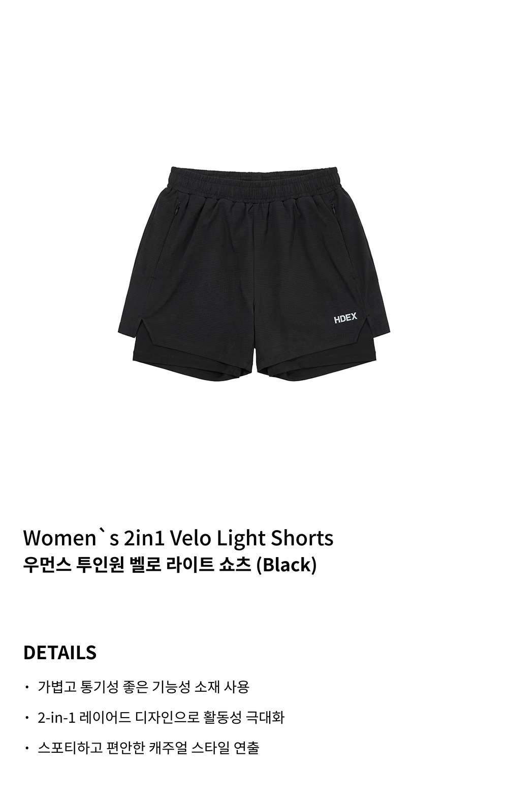 에이치덱스 우먼스 투인원 벨로 라이트 쇼츠 블랙
