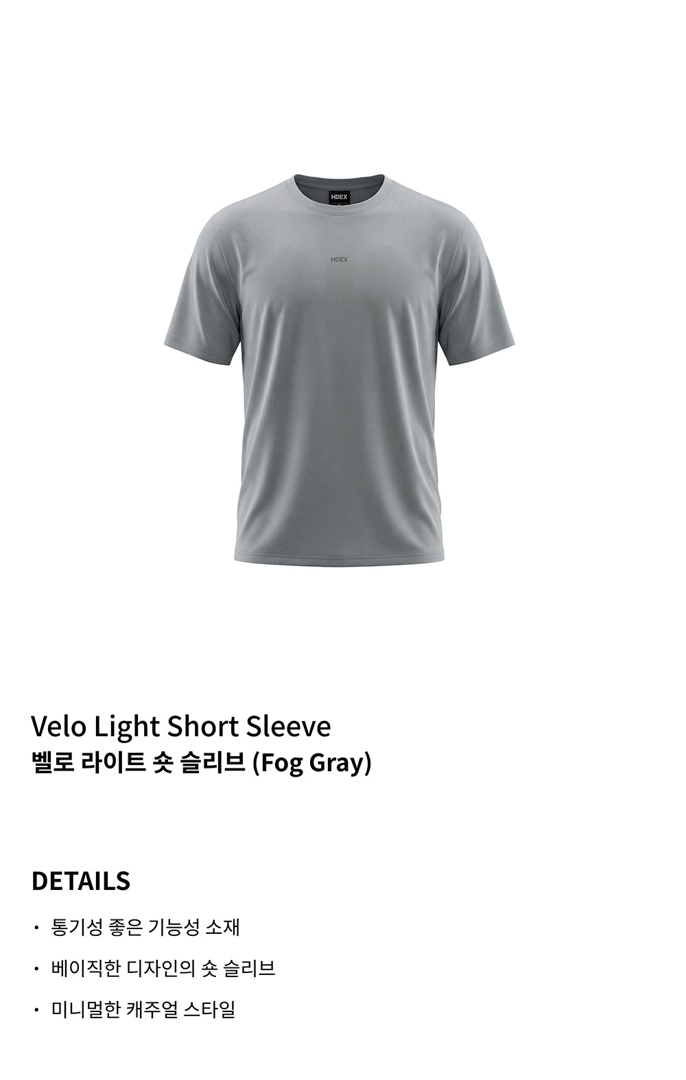 에이치덱스 벨로 라이트 숏 슬리브 포그 그레이