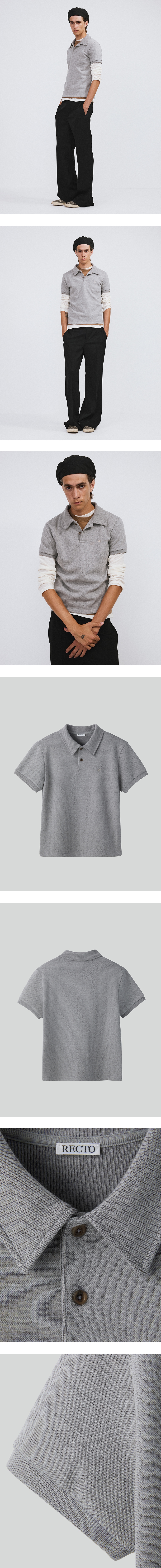 - 슬림 핏 실루엣의 쇼트 슬리브 폴로 셔츠 - 단정한 넥라인과 깔끔한 디자인 - 앞면 렉토 RC 자수 - 볼륨감 있는 피케 조직의 이중 저지 소재 - MADE IN KOREA 착용사이즈 M HEIGHT 189CM/ BUST 32"/ WAIST 29"/ HIPS 34"/ SHOES 285MM