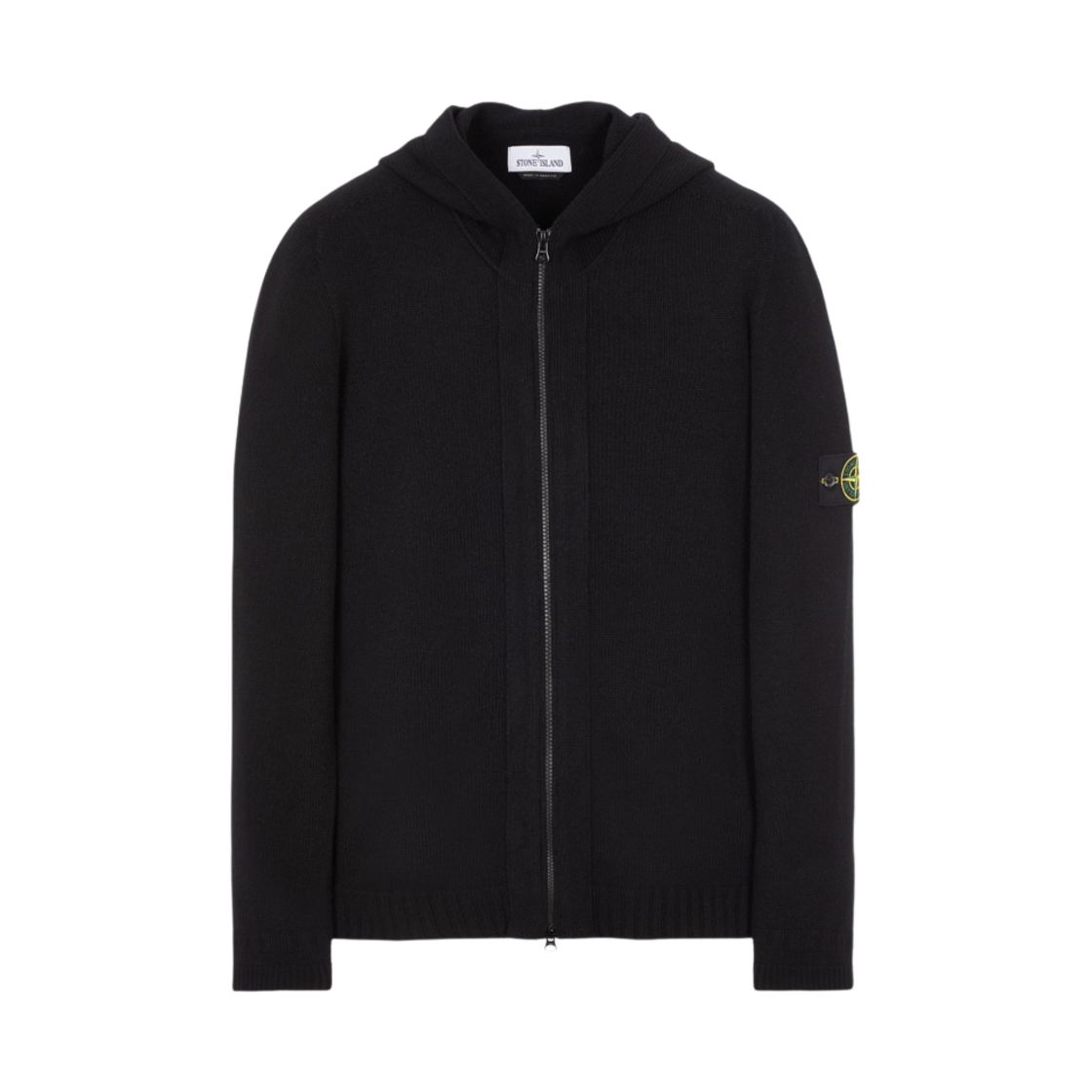 스톤 아일랜드 509A3 램스울 후드 가디건 니트 블랙 - 22FW