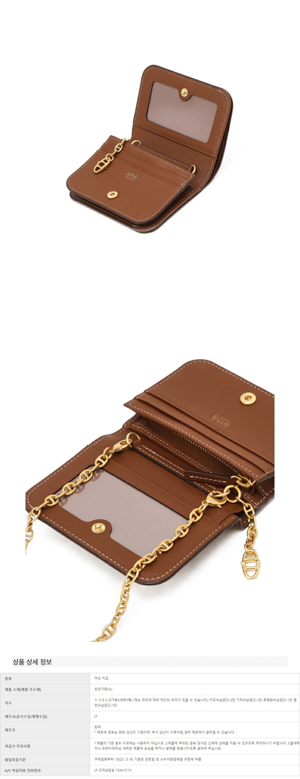 아떼 바네사브루노 액세사리 스탬프 브라운 더블에이 심볼 체인 반지갑 브라운