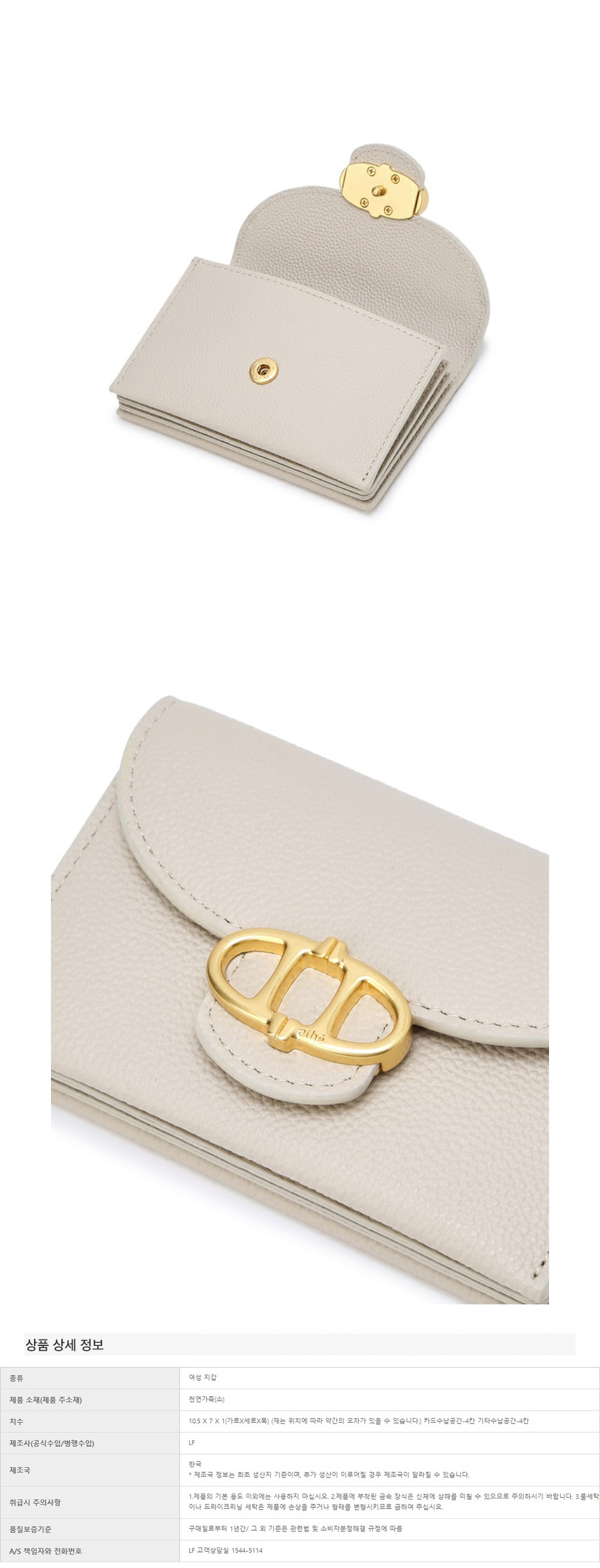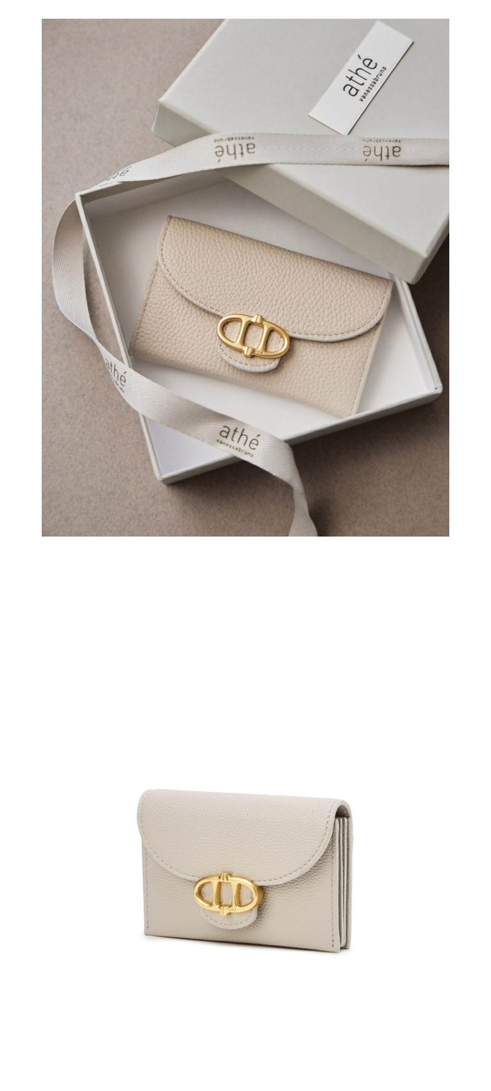 아떼 바네사브루노 액세사리 슈렁큰 플랩 아코디언 카드지갑 아이보리