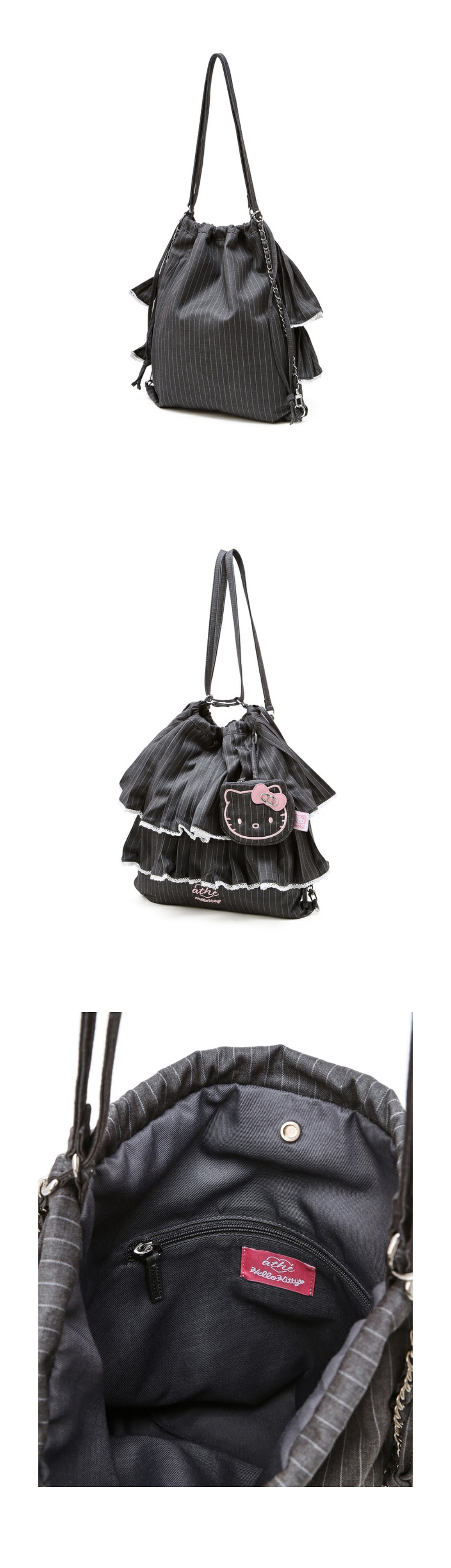 Athe Vanessabruno Acc [Hello Kitty X Athe] Frill Chain Dark Gray Stripe Backpack & Shoulder Bag S Normal Grey