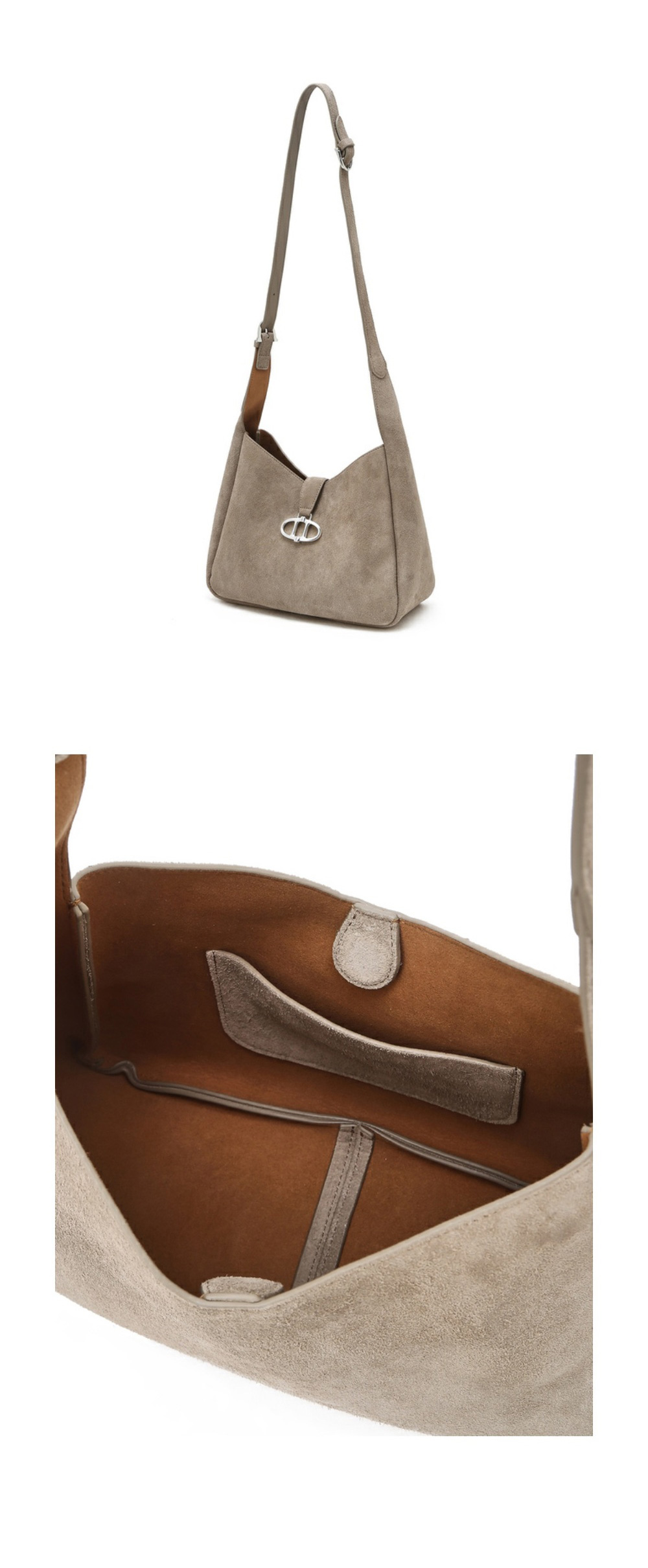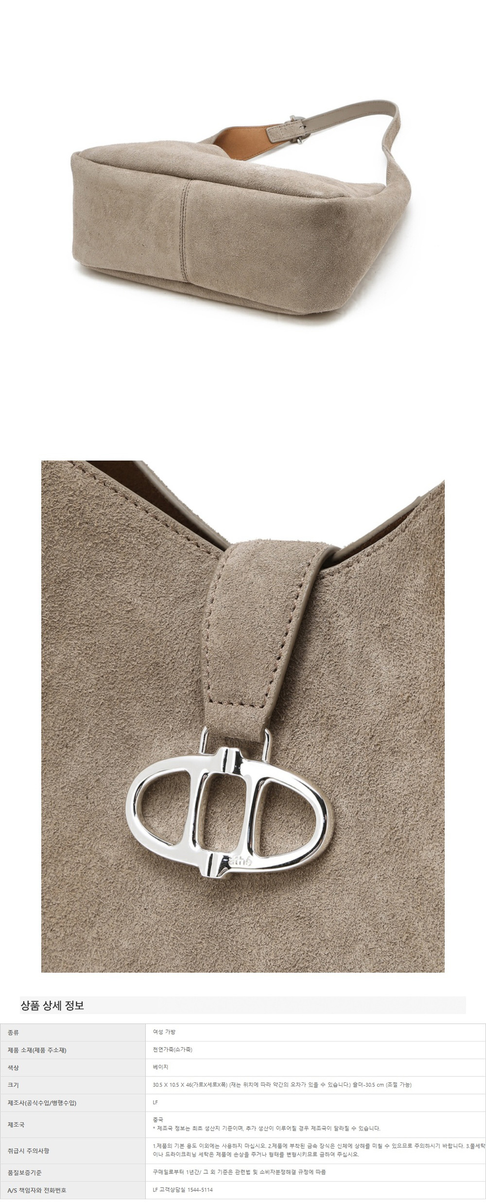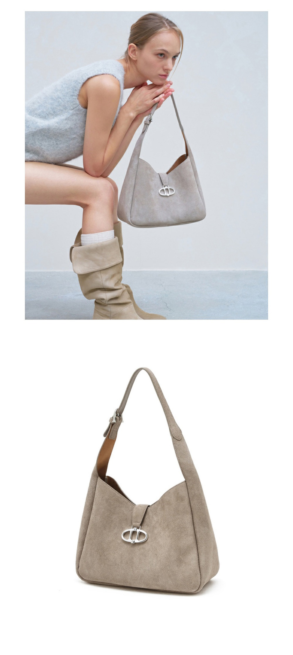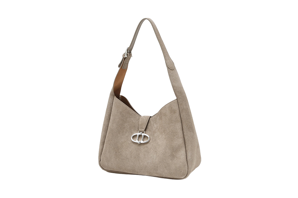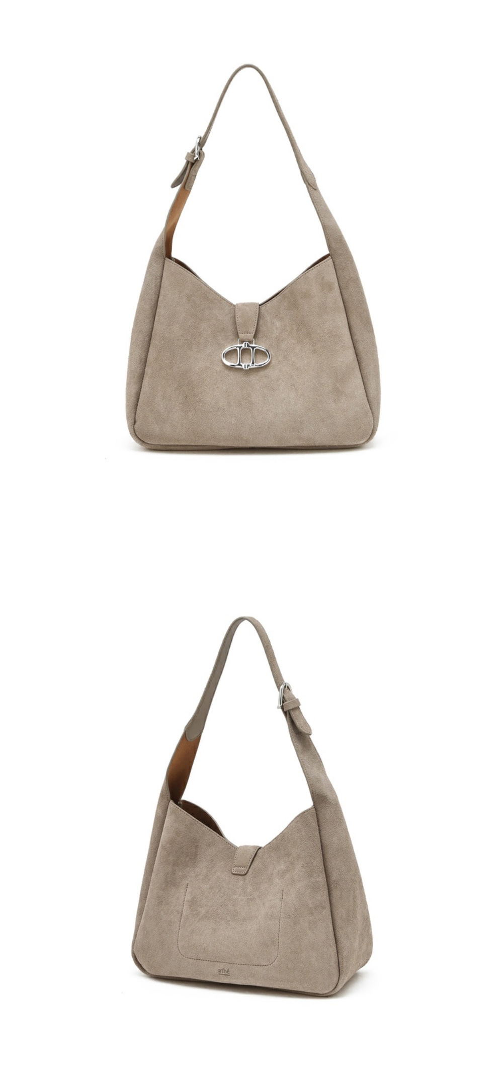 아떼 바네사브루노 액세사리 베이지 스웨이드 마롱 호보백 M 실버장식 다크 베이지