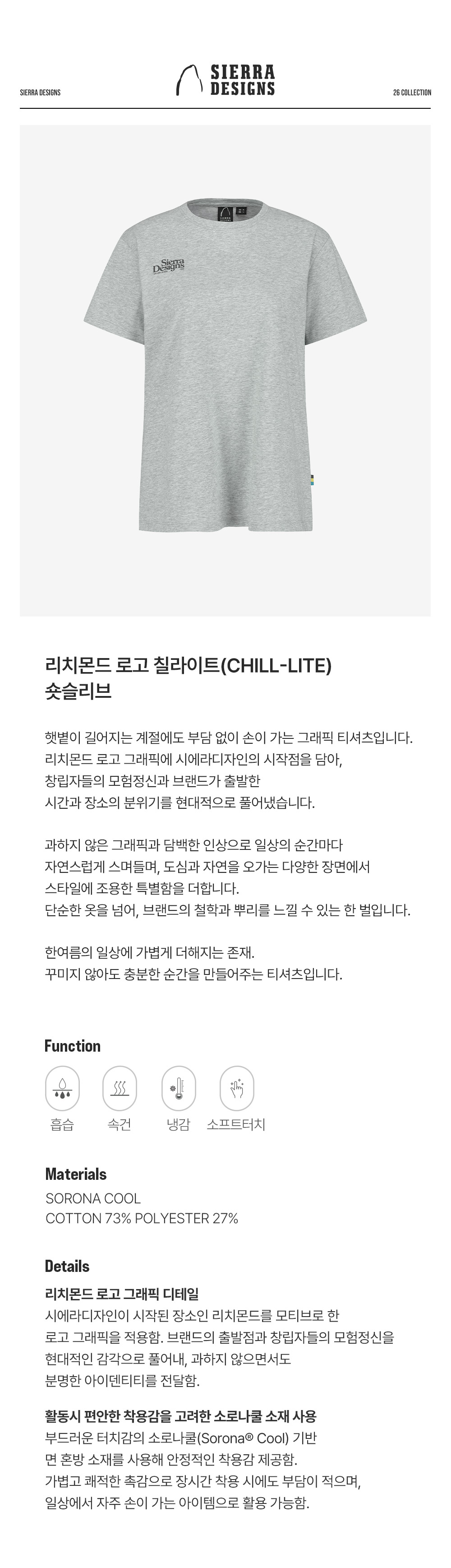 시에라디자인 우먼 리치몬드 로고 칠라이트 숏슬리브 멜란지 그레이