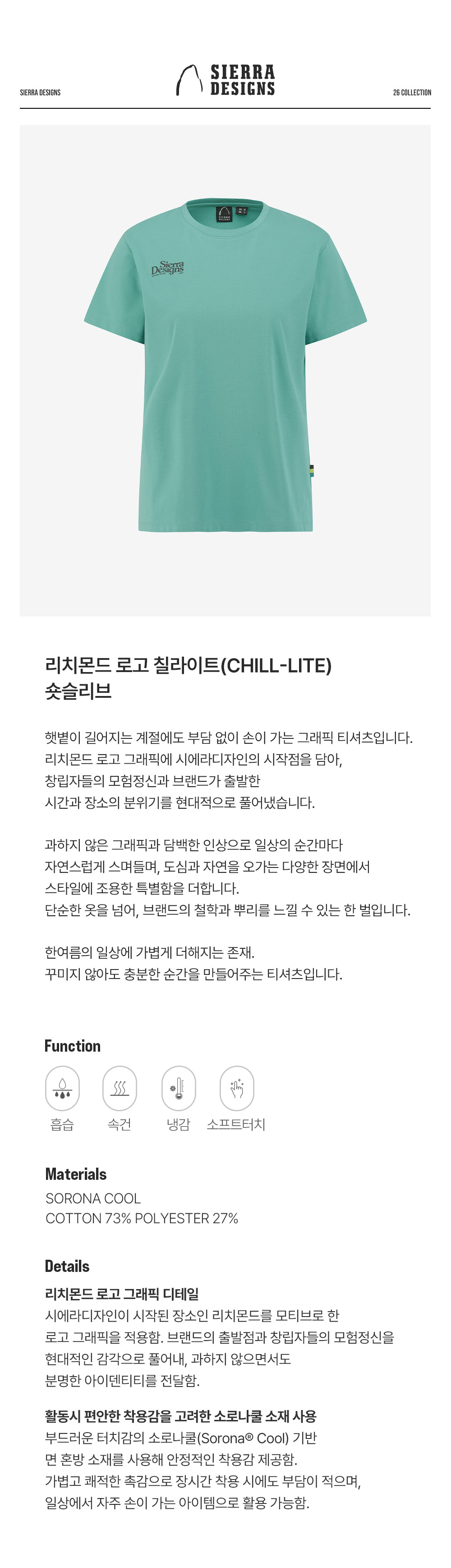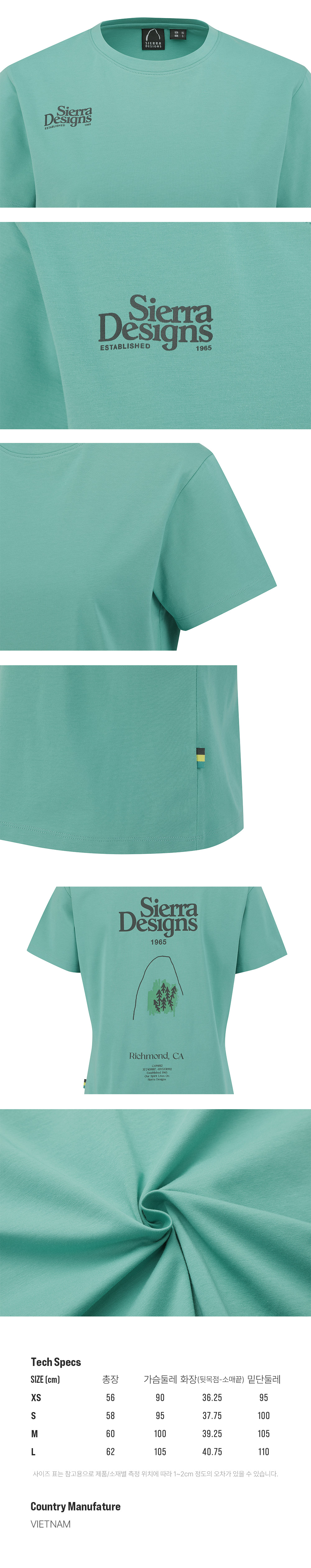 시에라디자인 우먼 리치몬드 로고 칠라이트 숏슬리브 블루 그린