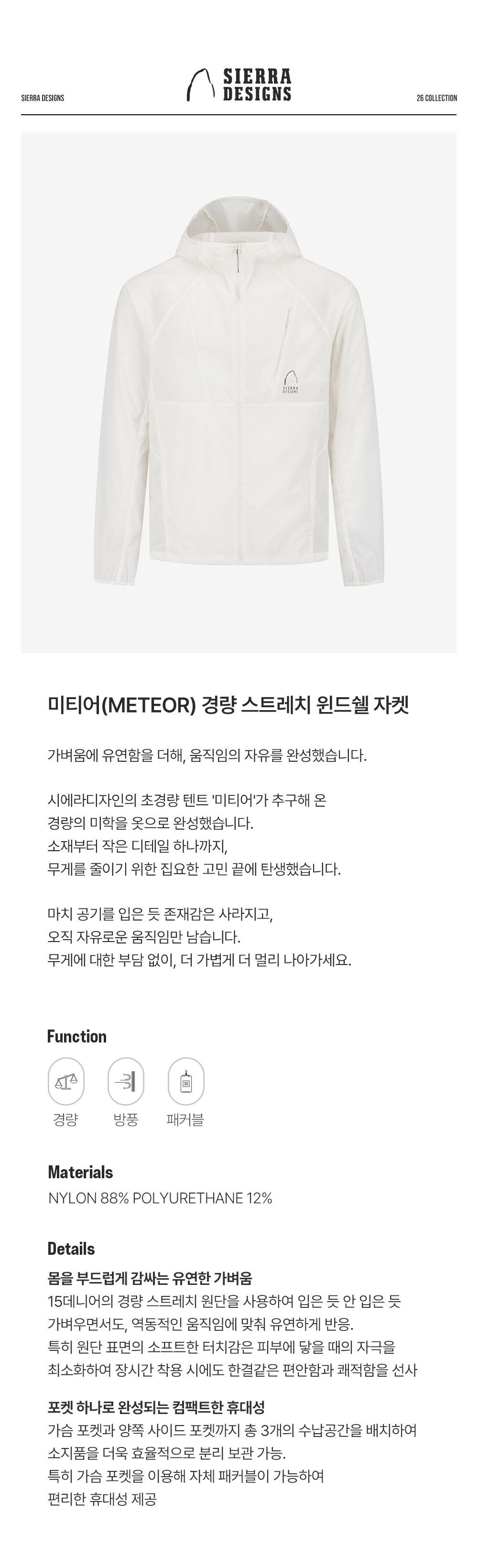 시에라디자인 미티어 경량 스트레치 윈드쉘 자켓 화이트