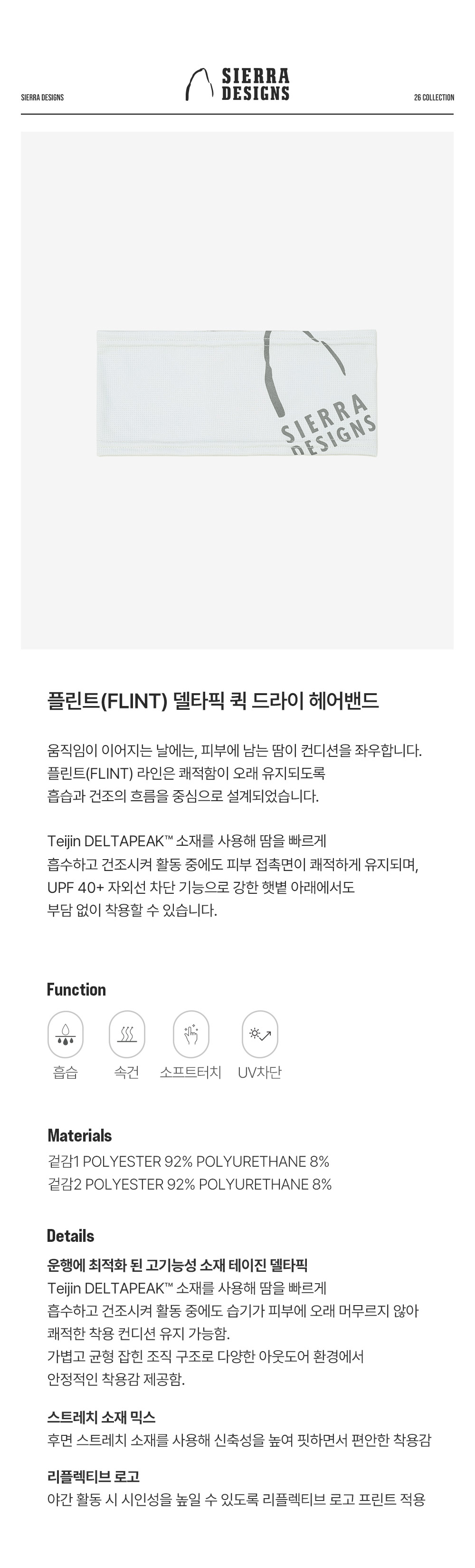 시에라디자인 플린트 델타픽 퀵 드라이 헤어밴드 라이트 그레이