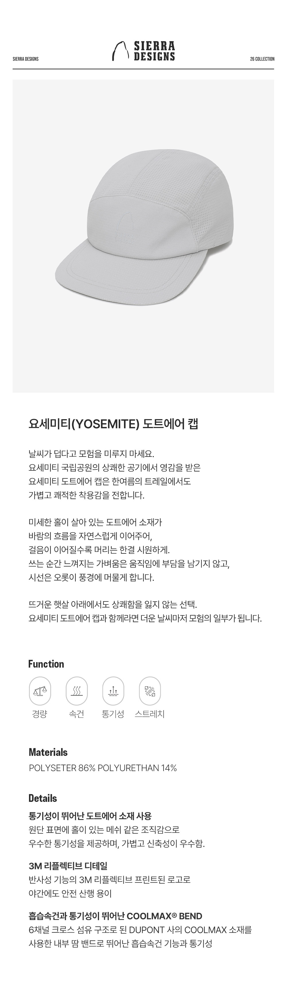 시에라디자인 요세미티 도트에어 캡 라이트 그레이