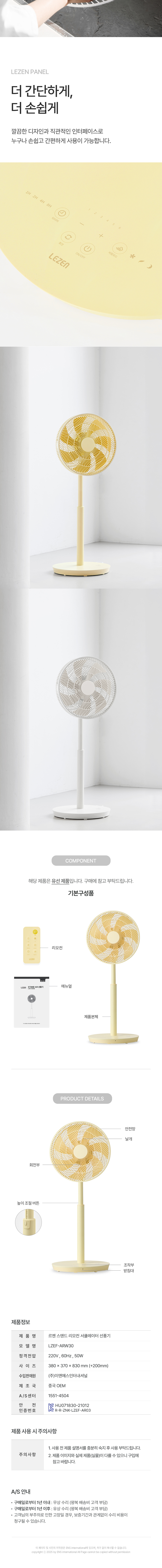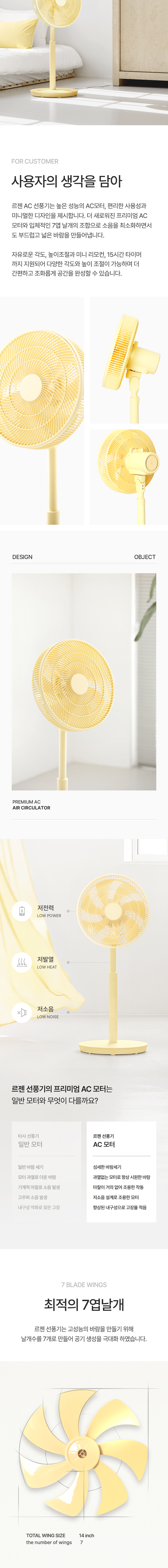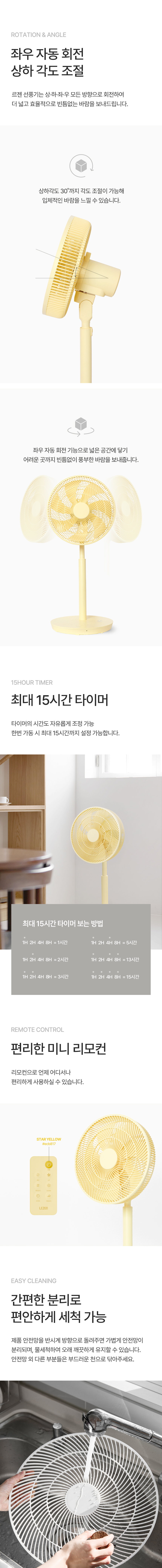 르젠 스탠드 리모컨 써큘레이터 선풍기 AR [버터옐로우] 저소음, 저전력 고출력 모터, 30도 상하 각도 조절, 최적의 7엽 날개, 10단계 높이 조절, 3가지 바람 모드, 6단 바람 세기, 편리한 리모컨, 좌우 자동 회전, 최대 15시간 타이머