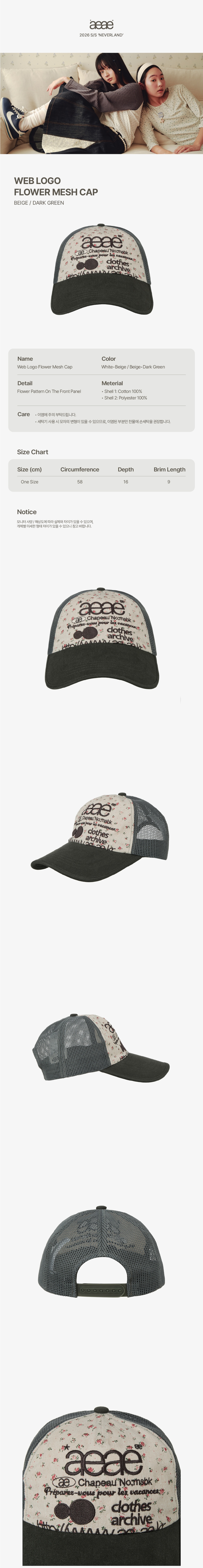 에이이에이이 웹 로고 플라워 메쉬 캡 베이지 & 다크 그린