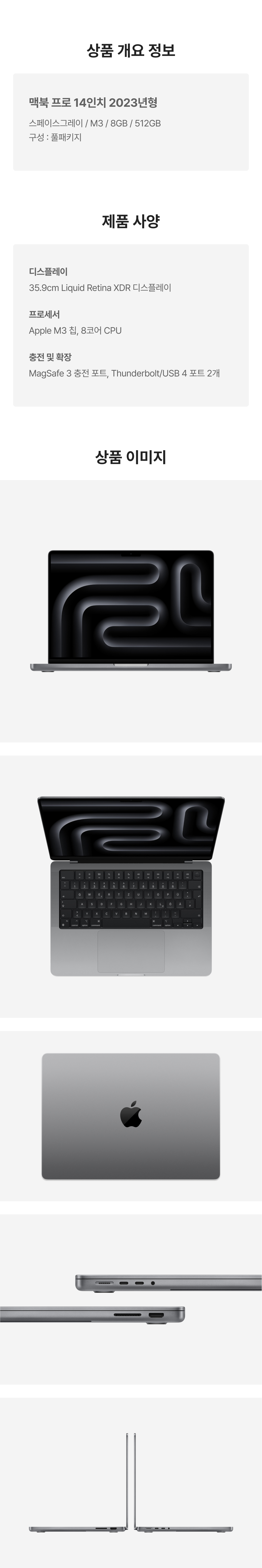 [A등급] 리퍼비시 2023 맥북 프로 14 M3 512기가 SSD 8기가 램 스페이스그레이