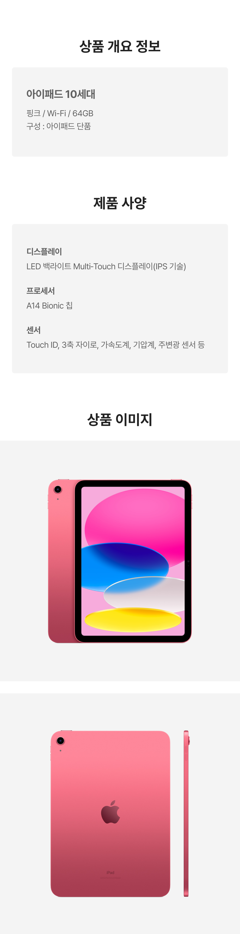 [S등급] 리퍼비시 아이패드 10세대 wifi A14 Bionic 64기가 핑크