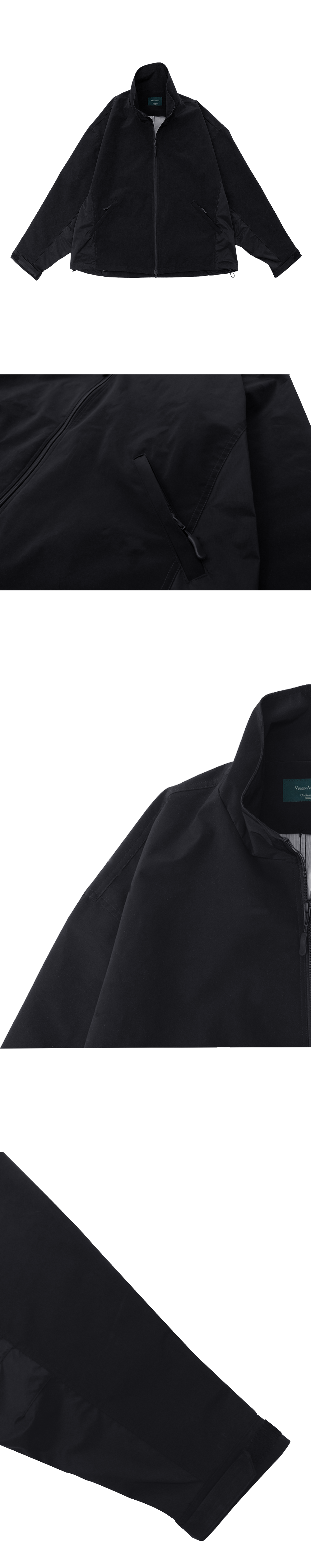 3레이어 원단으로 제작된 크롭 기장의 하드 쉘 자켓입니다. 견고한 원단감과 구조적인 실루엣이 특징이며, 방풍·방수의 기능성과 함께 날카로운 아웃라인을 연출합니다. MODEL 1 : 180CM / 61KG WEARING SIZE : 1 MODEL 2 : 177CM / 59KG WEARING SIZE : 2