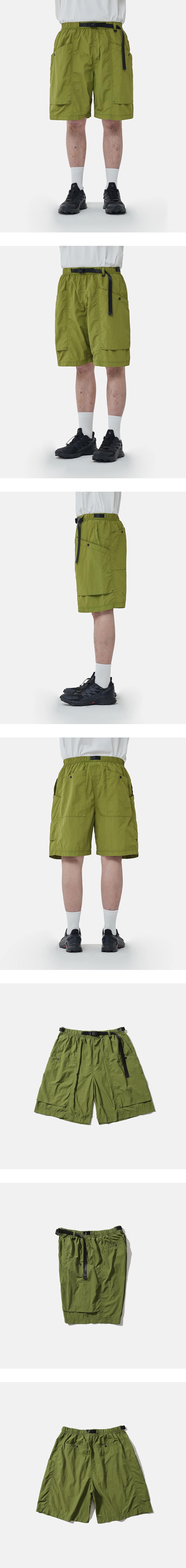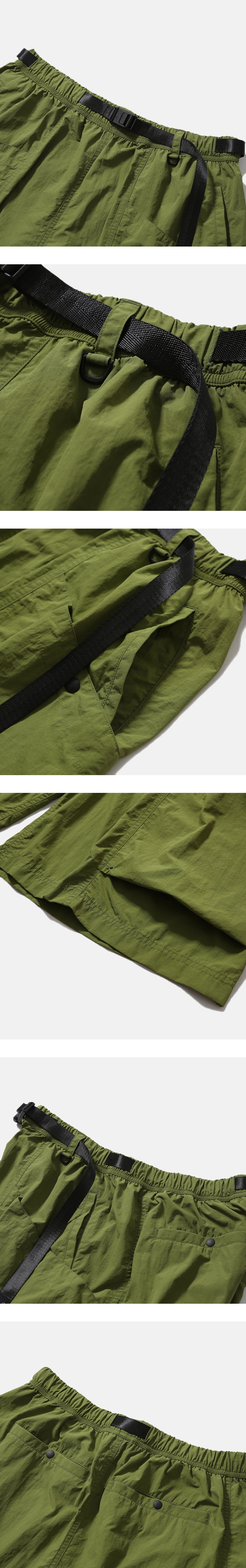 야외활동에 활용도가 높은 주머니가 매력적인 반바지 · 넉넉한 느낌의 루즈한 실루엣. · 메탈릭 한 나일론 립스탑 원단 사용. · 자석이 부착된 버클을 사용하여 편리하게 착용 가능. · 전면부와 옆선까지 이어지는 넓고 커다란 패치 포켓. · 열쇠 등을 걸 수 있는 고리 디테일. · 후면부 스냅 여밈의 패치 포켓. · 사이즈 조절이 가능한 허리 벨트와 신축성이 있는 허리 밴드. 모니터 사양에 따라 상품의 색상이 실제 상품과 다소 차이가 날 수 있습니다.
