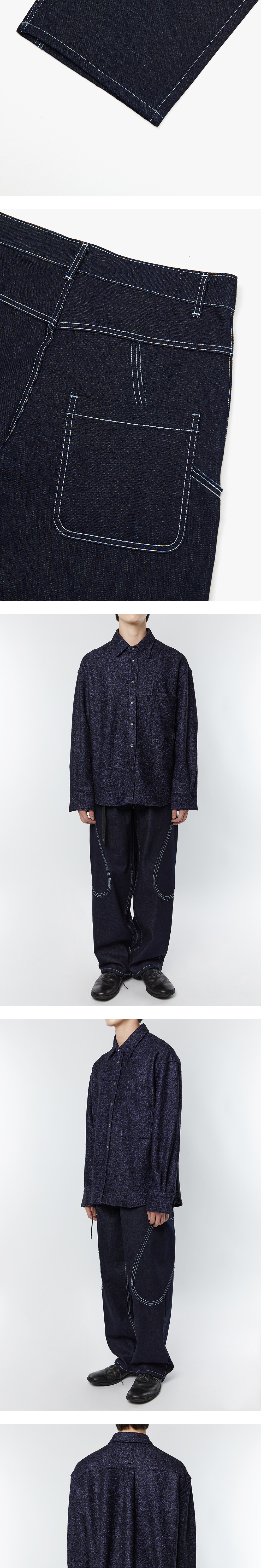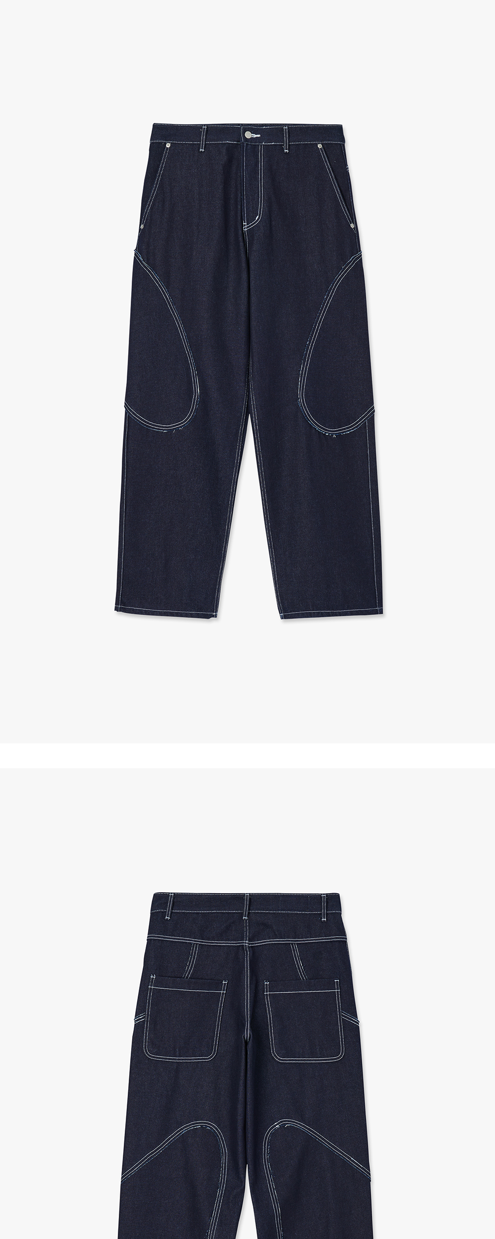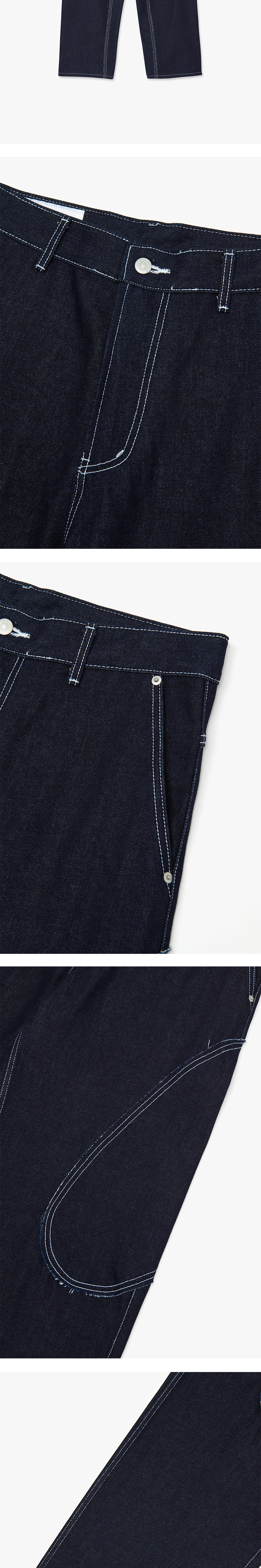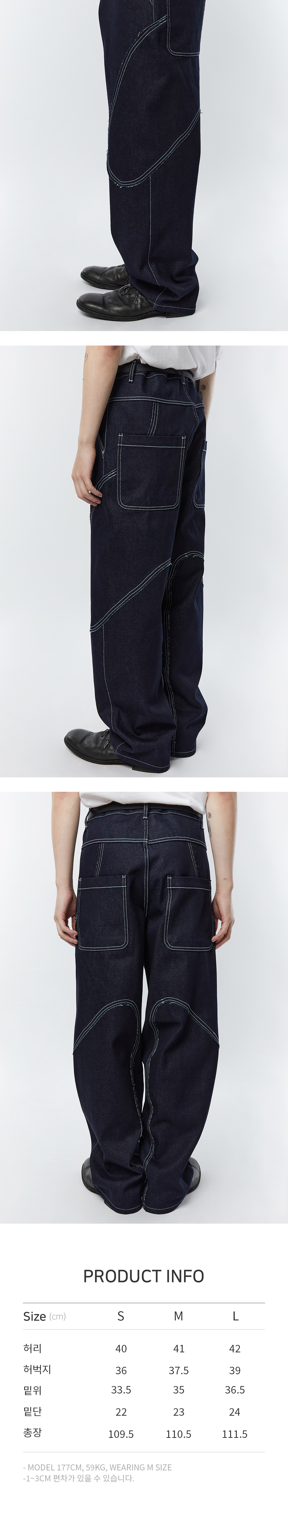 타이핑 미스테이크 커브드 라인 와이드 데님 팬츠 딥 인디고 - 22FW