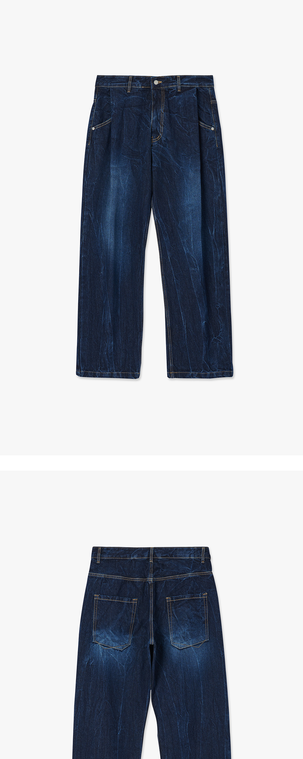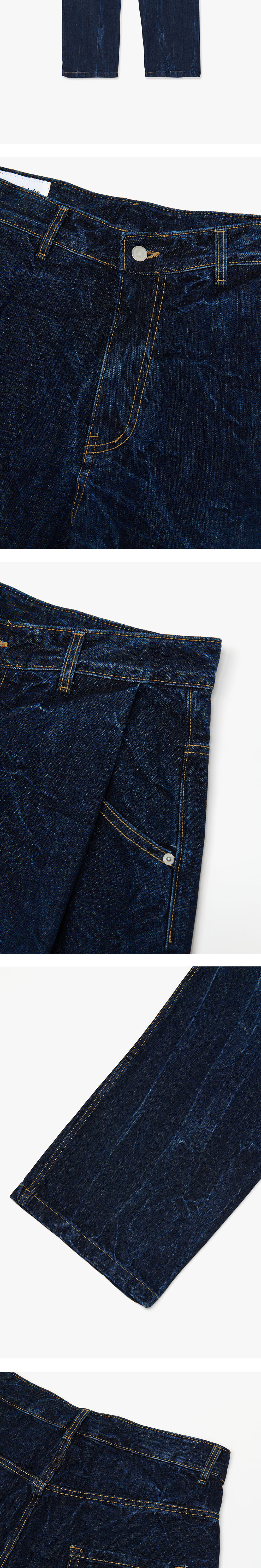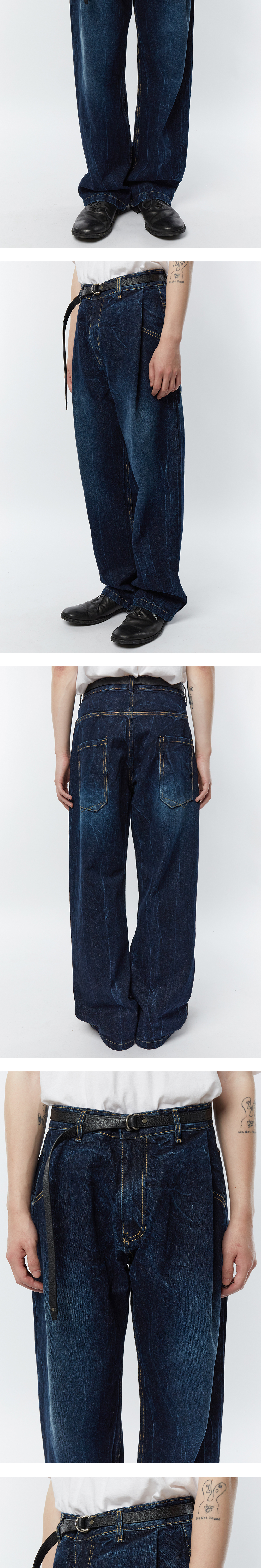 타이핑 미스테이크 크랙 워시트 턱 와이드 데님 팬츠 인디고 - 22FW