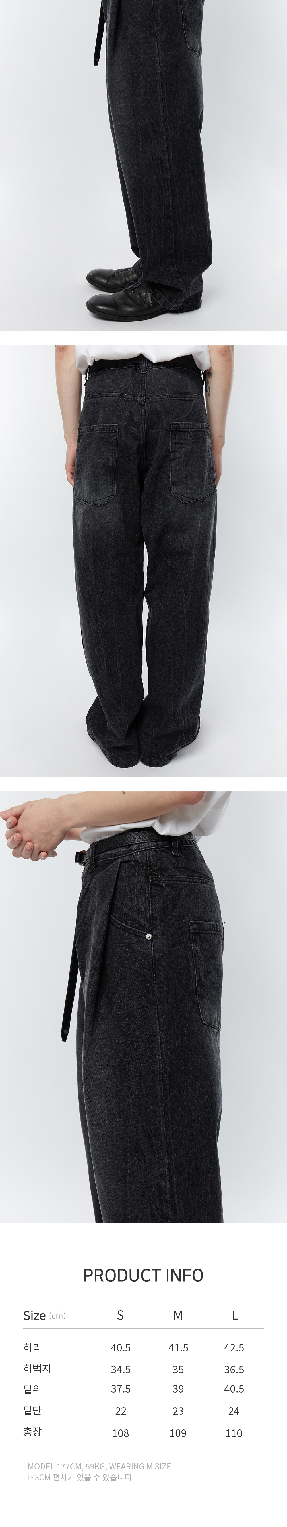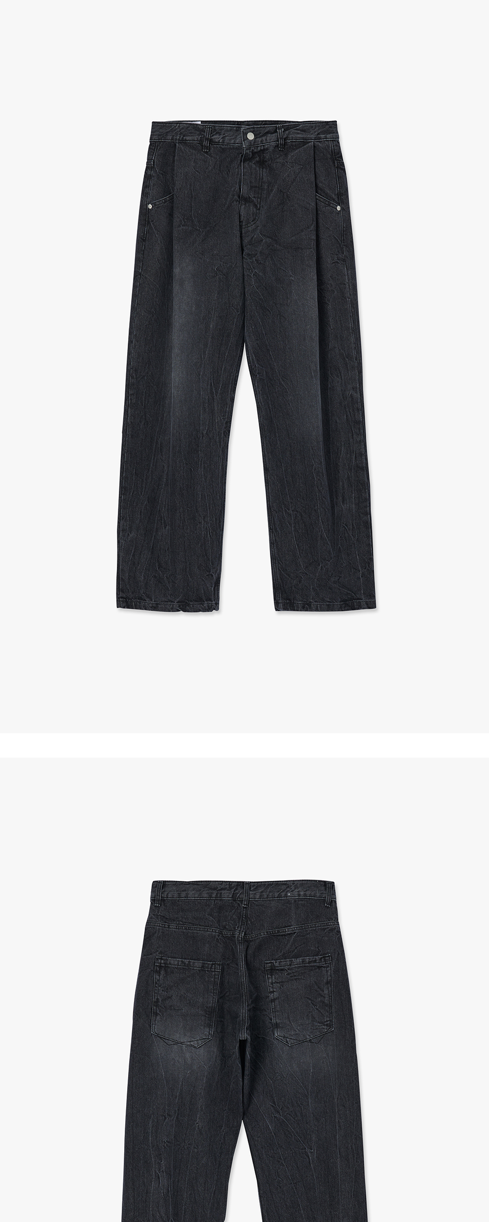 타이핑 미스테이크 크랙 워시트 턱 와이드 데님 팬츠 블랙 - 22FW