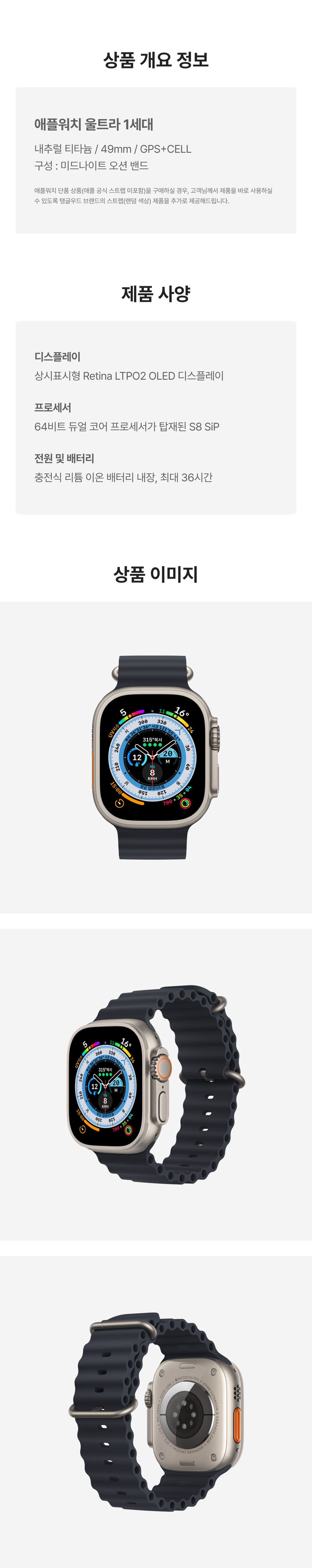 [B등급] 리퍼비시 애플워치 울트라 49mm 티타늄 케이스 오션 밴드 미드나이트